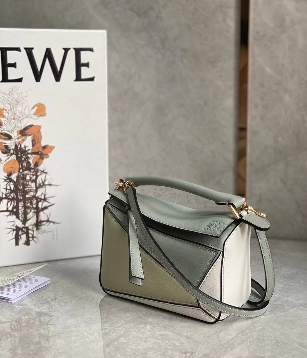 Loewe’s ‘Puzzle’ bag was the first design Jonathan Anderson created after being appointed Creative Director back in 2013, and it’s remained a cult piece ever since. Expertly crafted from classic calfskin, this color-block version is detailed with hand-painted black edges that really emphasize the origami-inspired panels. Carry it as a tote or fold it to fit under your arm as a clutch.
