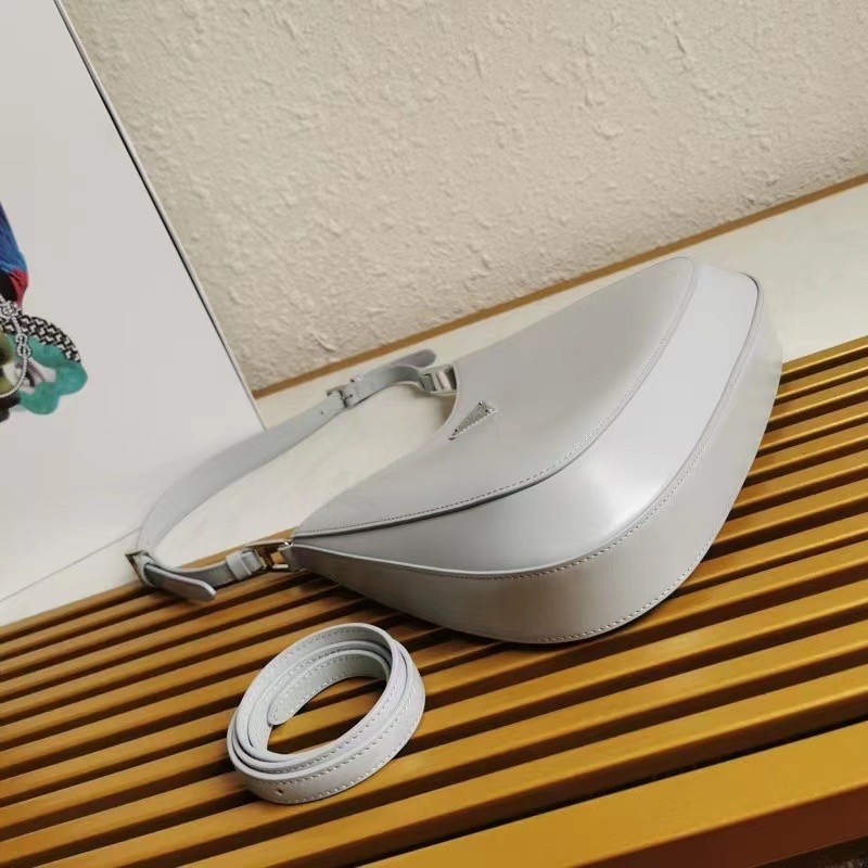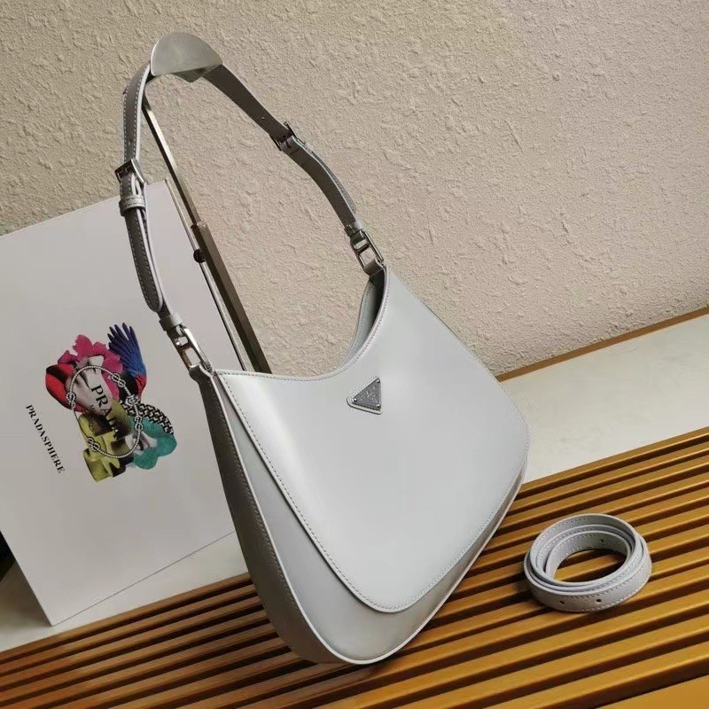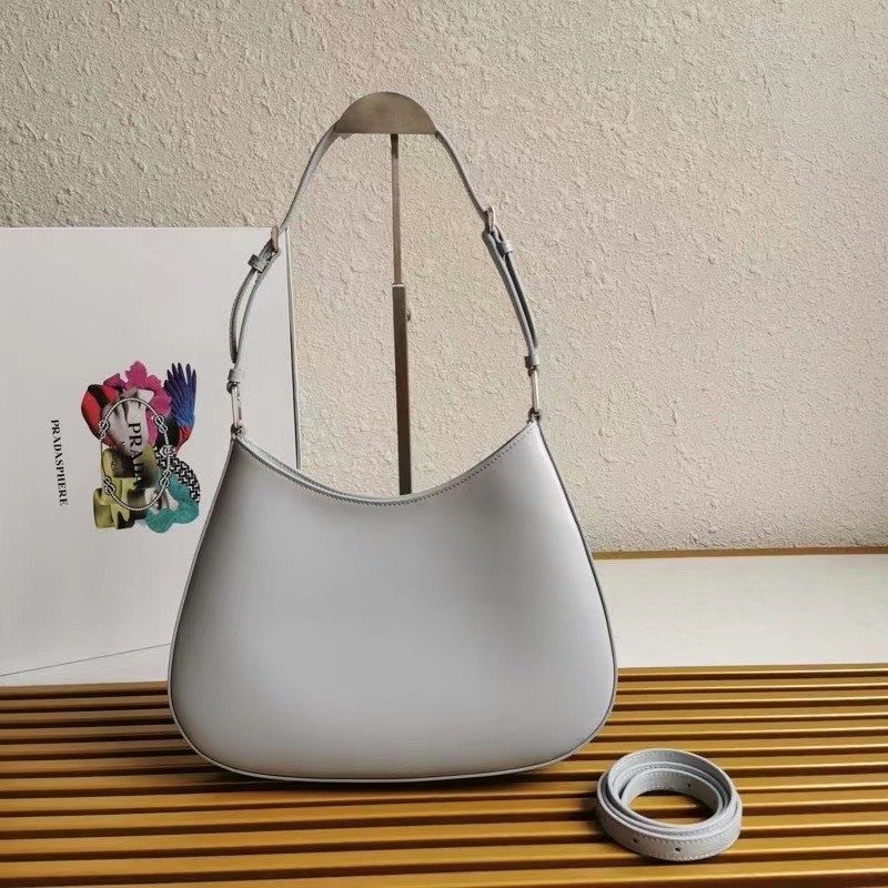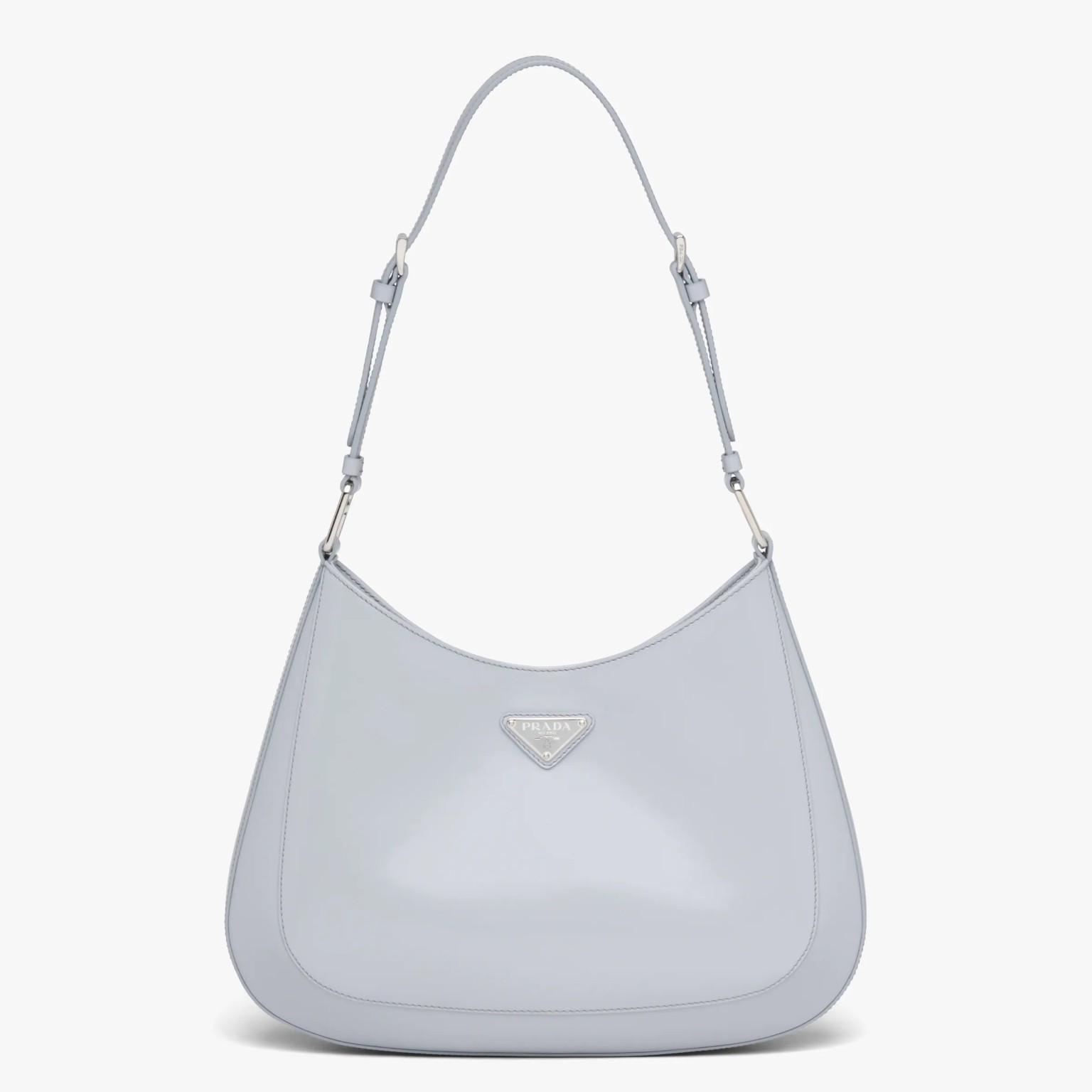 Meet the newest member of the Prada bag family: the Cleo shoulder bag. A modern interpretation of a style from the archives, this brushed leather design is lined with signature nylon and finished with the house’s iconic enameled triangular emblem. Expect to see it on the arms of fashion’s finest this season.