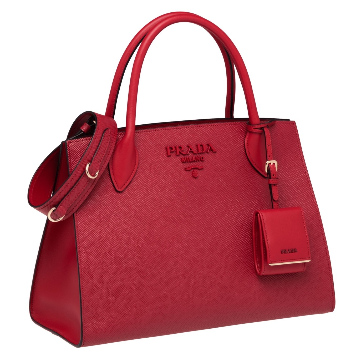 The design of the Monochrome Bag is a combination of Prada*s previous released tote bags. It could be that they have taken all the best components and put them together to create a complete new tote. It is made with the Prada logo that matches to the color of the bag. The size is big enough to store your small laptop or documents for work. The look is stylish as well and can be used for special occasions as well as casual days.