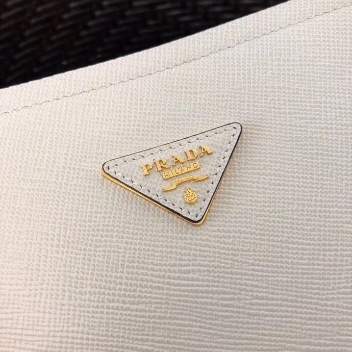 – Metal logo on Saffiano leather triangle