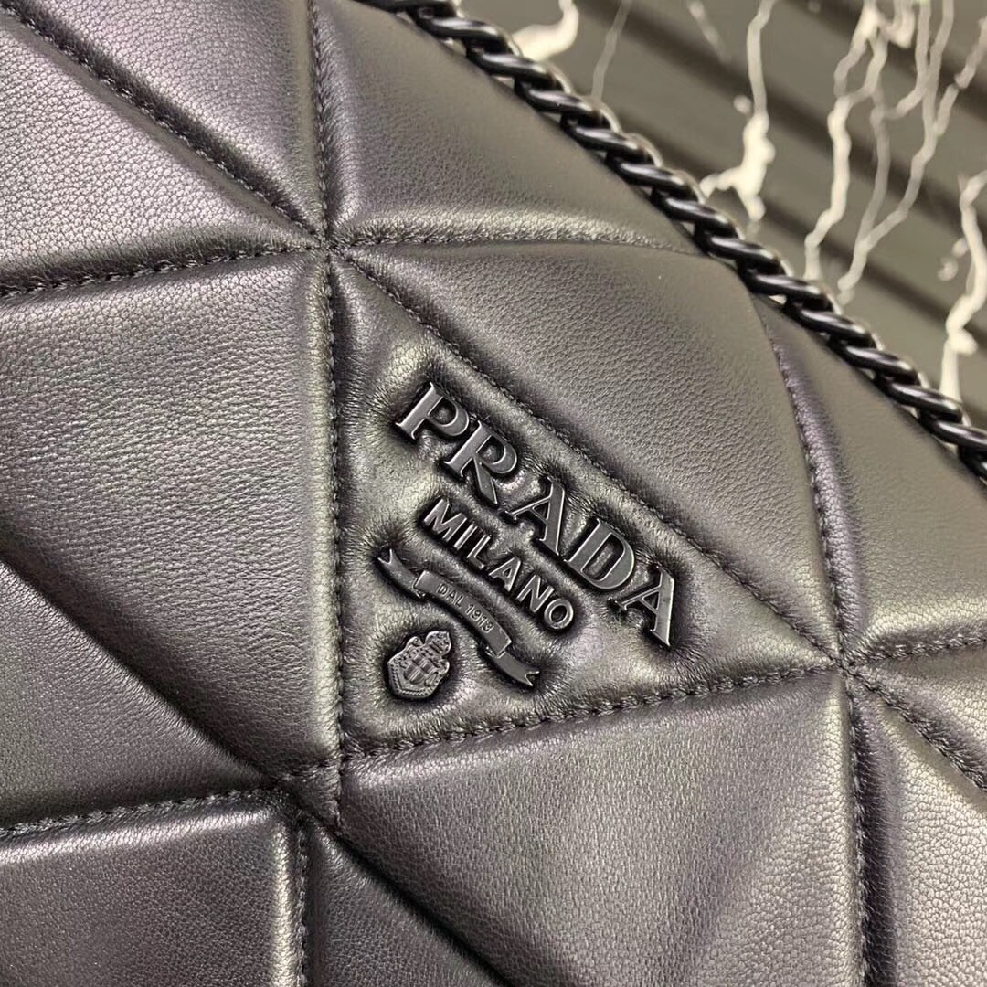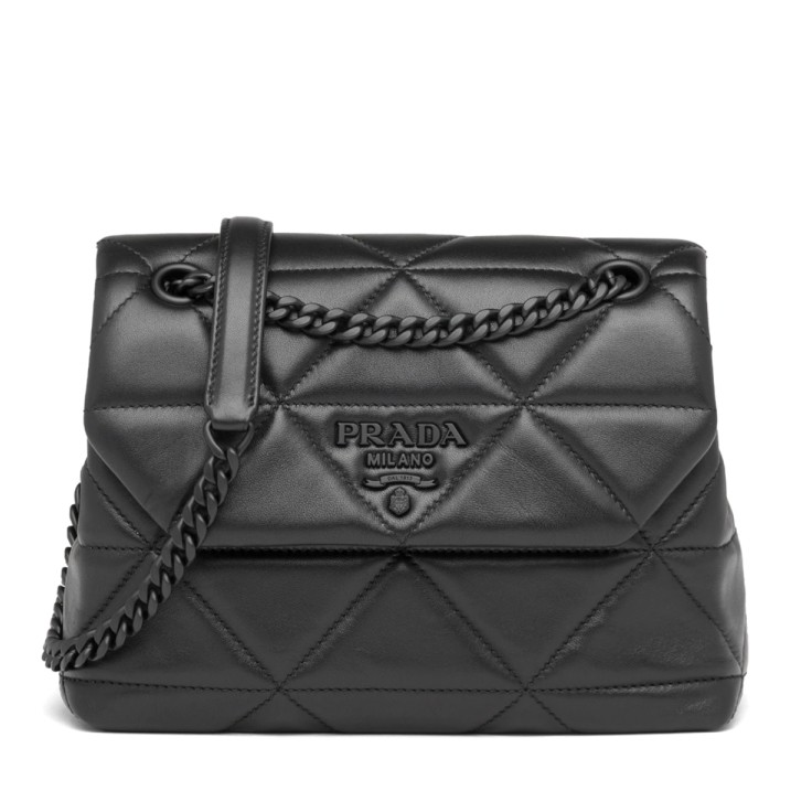 Feminine in design,the Prada Spectrum small shoulder bag is characterized by a geometric motif designed by the stitching on the nappa leather. It has a tonal metal lettering logo.
