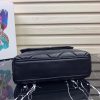 – Sliding tonal metal chain shoulder strap and leather shoulder pad