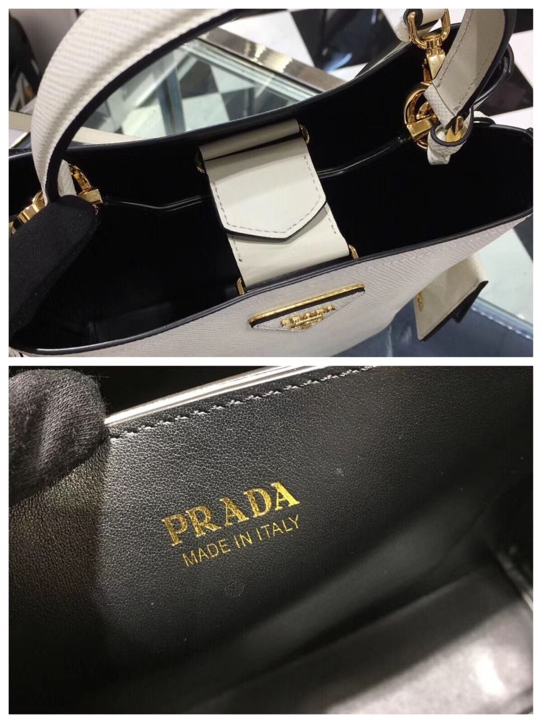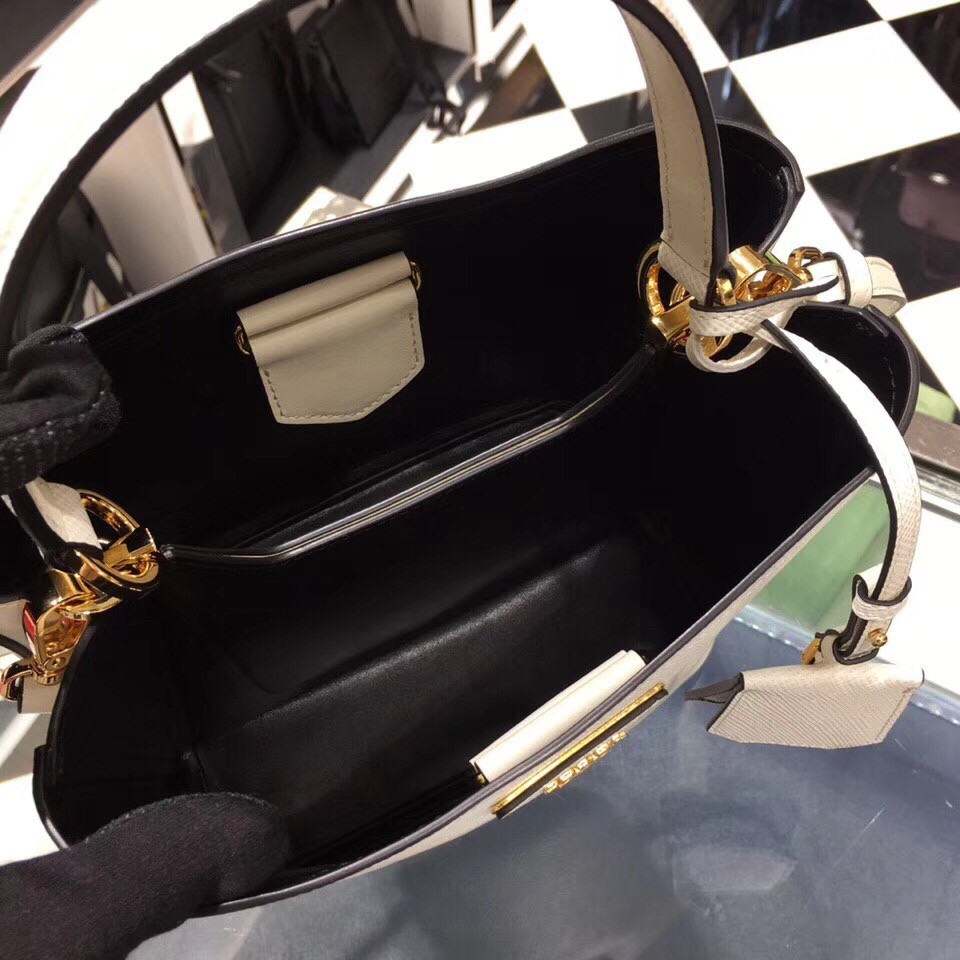 The Prada Double Bag is one of the house*s classics. But there is something exciting we need to share and it*s new. The Prada North South Double Bag, take a look at the shape, It looks very cute and it can be carried on the shoulder, crossbody or simply tote it from day to night thanks to the leather handles.