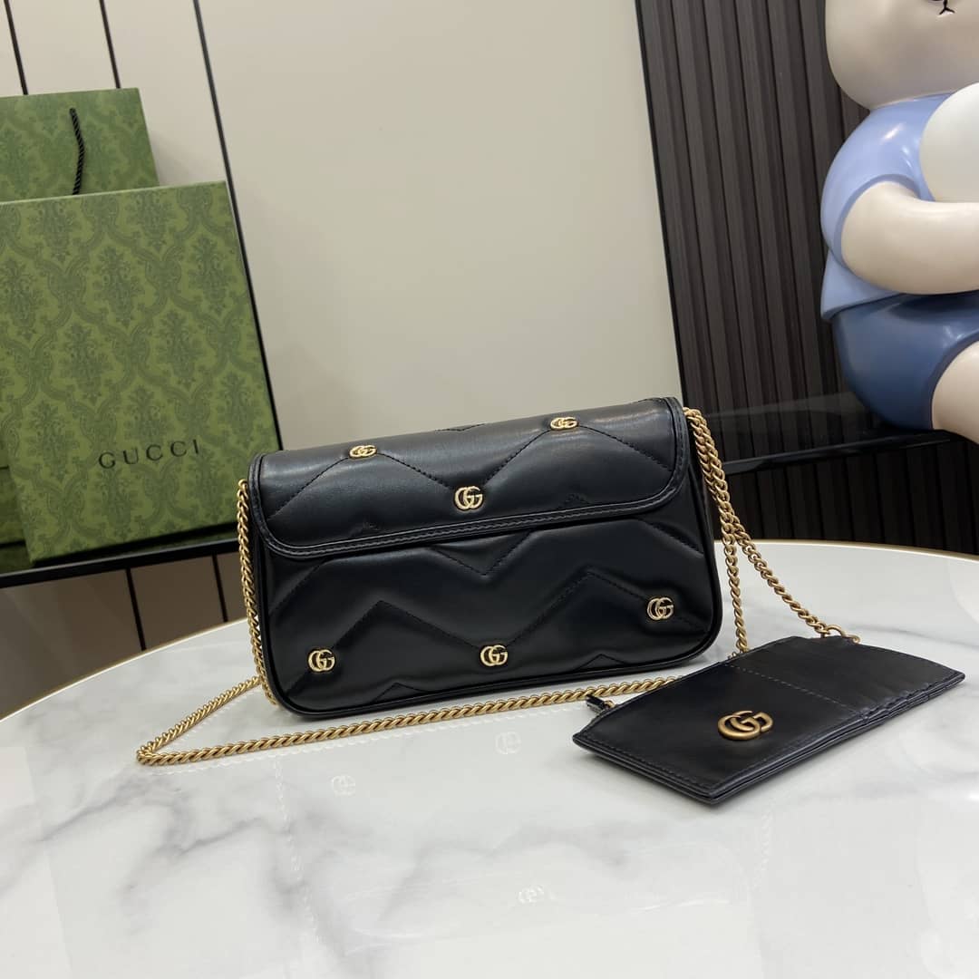 Beyond its beauty. the Gucci Chain Bag is designed with practicality in mind. It features a spacious interior that can comfortably hold your essentials. from your phone and wallet to makeup and keys. The secure clasp ensures your belongings are safe. while the chain strap can be adjusted for shoulder or crossbody wear. offering versatility and convenience.