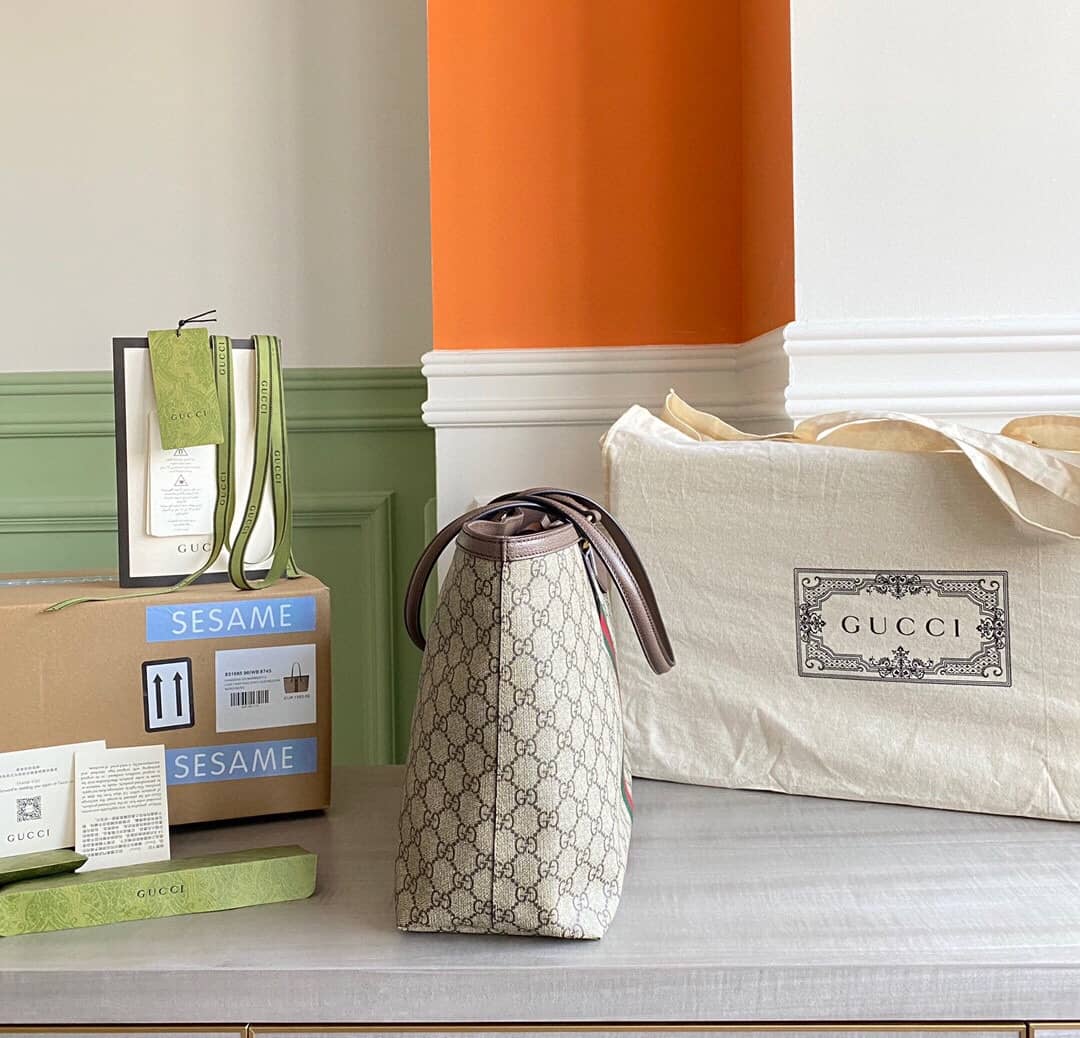In addition to its stunning appearance. the Gucci Tote Bag is incredibly practical. The sturdy handles are designed for comfort. allowing you to carry the bag effortlessly throughout the day. The secure top closure ensures your belongings are safe and protected. while the spacious main compartment provides ample storage space for your essentials. Whether you need to carry your laptop. makeup. or other daily necessities. the Gucci Tote Bag has you covered.