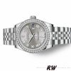 Rolex Datejust 178384 Stainless Steel Silver Roman Dial 31MM Lady Replica Watch,has a White Gold 31 mm Round Case with Screw Down Crown,White Gold bezel with set diamonds.Silver Dial with Roman Dial Markers.Date calendar at 3 o’clock aperture. Stainless steel jubilee bracelet with fold over clasp.