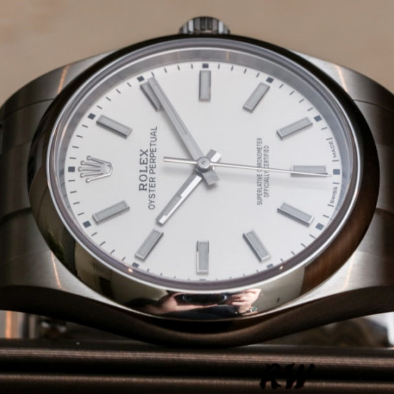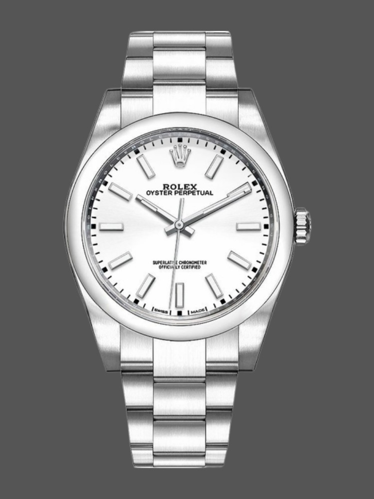 Rolex Oyster Perpetual 114300 White Dial 39mm Mens Replica Watch.39mm stainless steel case, screw-down back, screw-down crown with twinlock double waterproofness system, domed bezel, scratch-resistant sapphire crystal. white dial, a rather squarish case with brushed flat surfaces and polished sides, relatively thin case bands, a domed polished bezel, a 3-link Oyster bracelet with brushed flat surfaces. All in all, a watch that is solid, water-resistant, robust enough for sporty gentlemen, yet perfectly proportioned for office use.