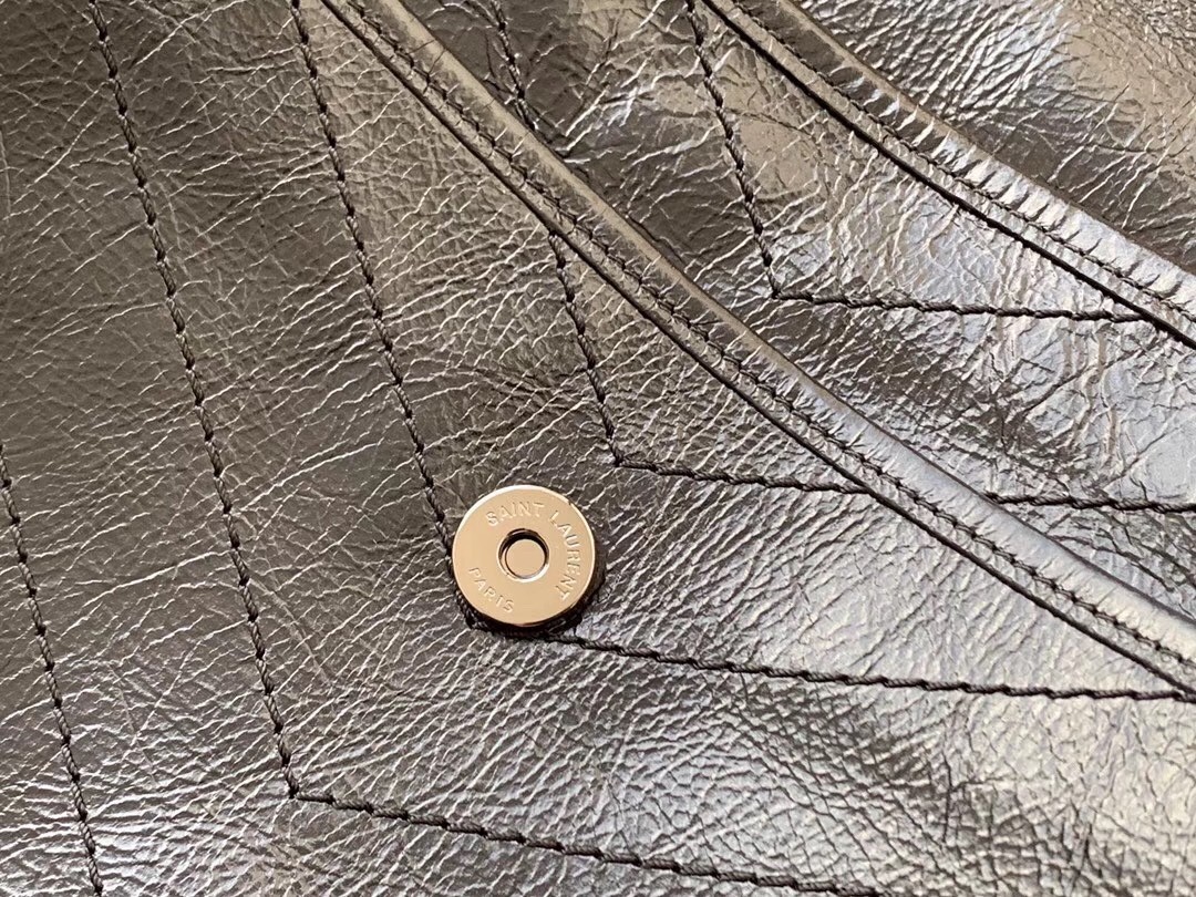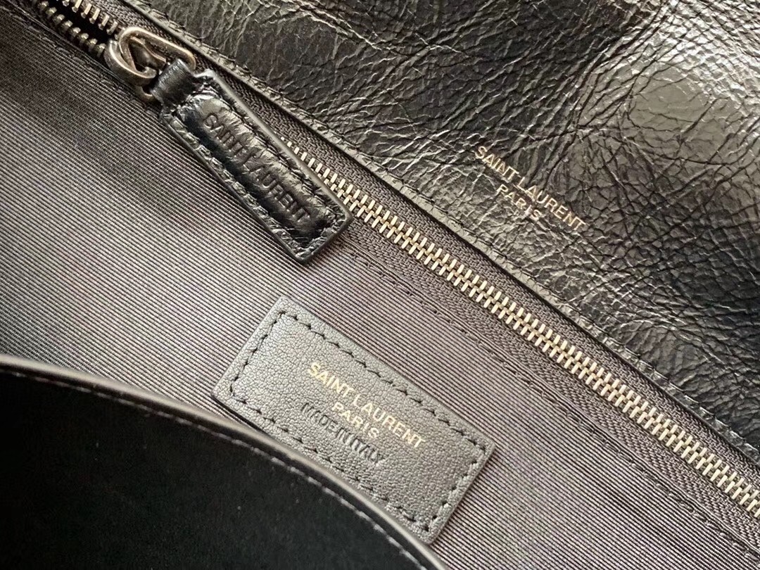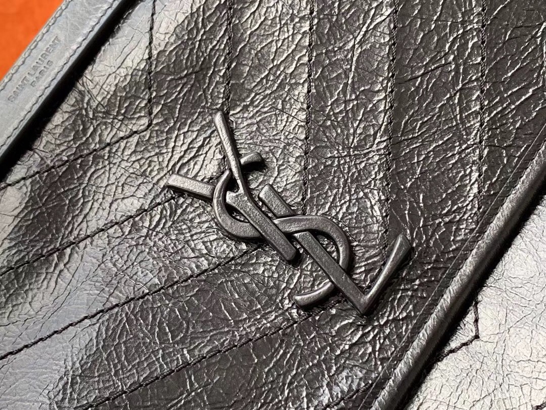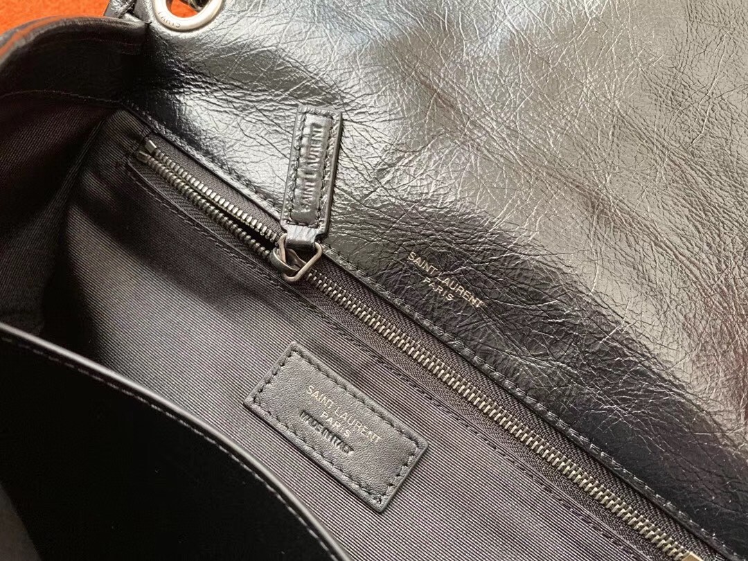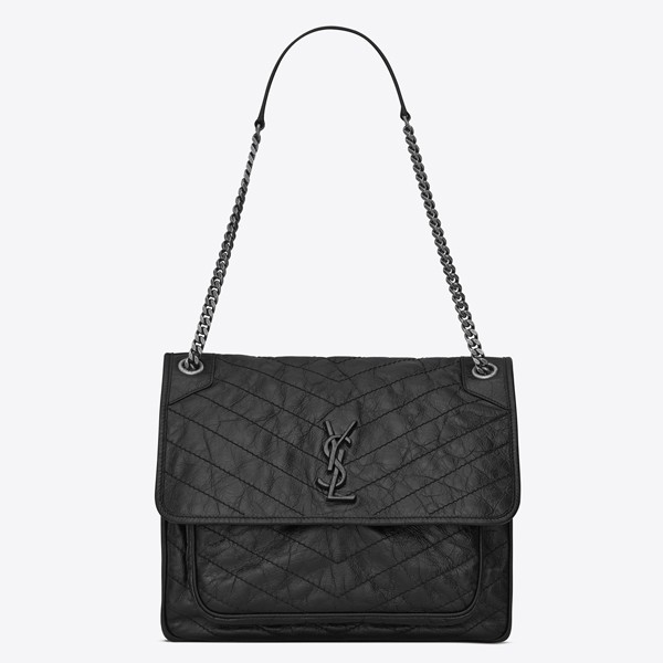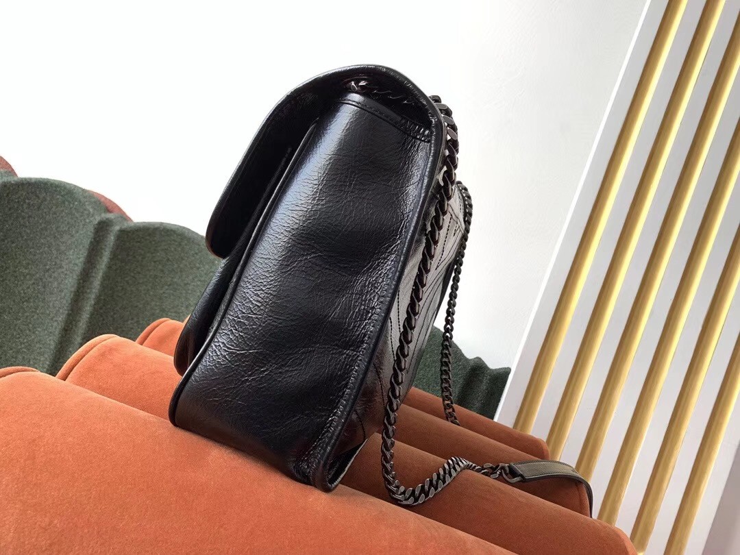 Saint Laurent Saco grande com corrente Niki em pele preta enrugada