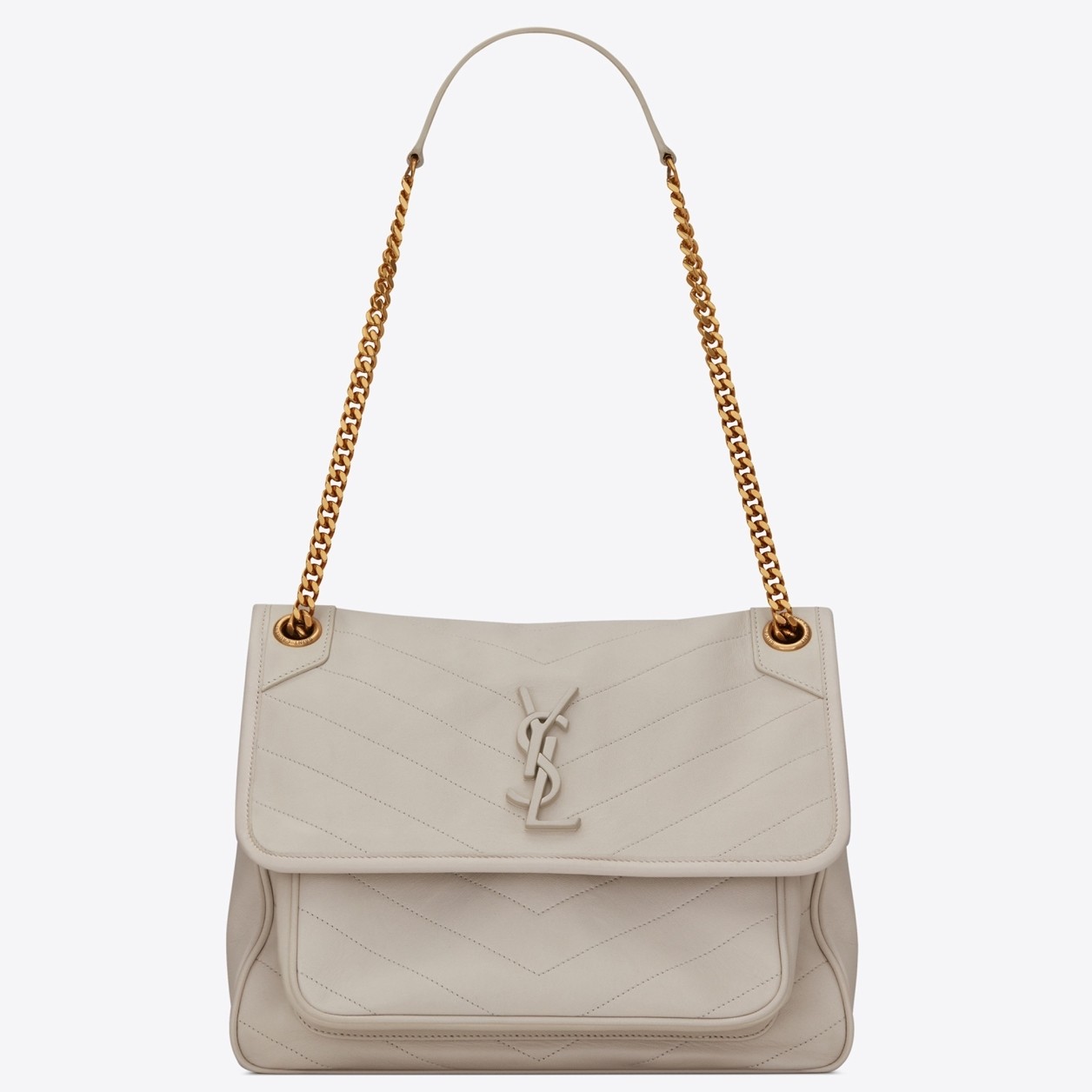 Saint Laurent’s Niki medium handbag is a classic you’ll return to season after season. Crafted from smooth lambskin leather, it’s quilted into chevrons and has a tonal ‘YSL’ plaque. The gleaming gold straps mean it can be worn cross-body or doubled up on your shoulder. It’s spacious enough to fit the extra things you need on a busy day.