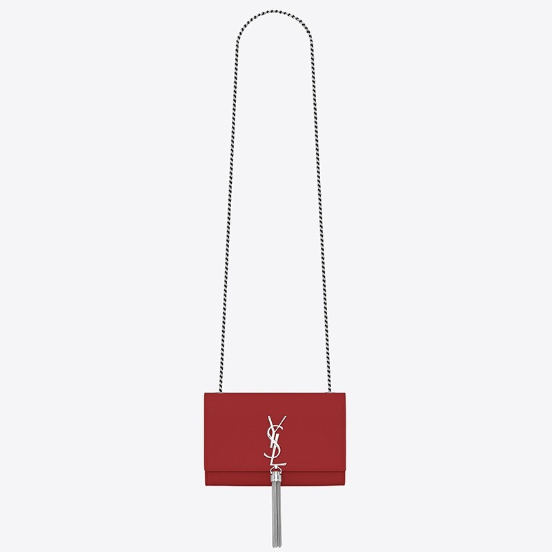 The ultimate party sidekick, Saint Laurent’s Kate bag is defined by its iconic YSL monogram, tassel detailing and detachable chain strap. Updated for the new season in grain de poudre embossed leather with a wallet-style interior, the structured silhouette will lend a sophisticated finish to evening looks.