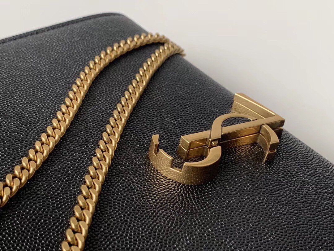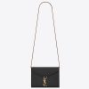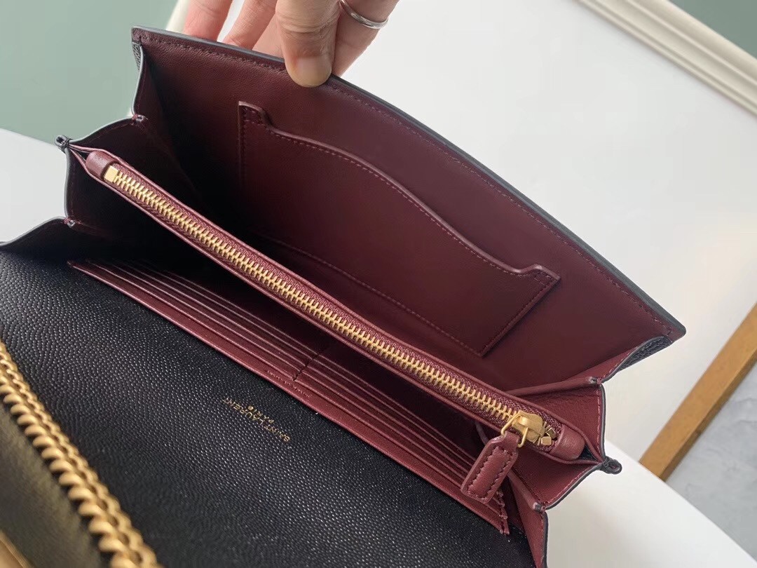 Downsized to amplify its dusk-to-dawn appeal, Saint Laurent’s Cassandra style is reintroduced for Autumn/Winter 2019 as a wallet bag. Encompassing a series of card slots, a zipped interior compartment and a slip pocket, every essential has a place. Characterised by its logo hardware, just flick the L to unlock the flap front and access its interior delights.