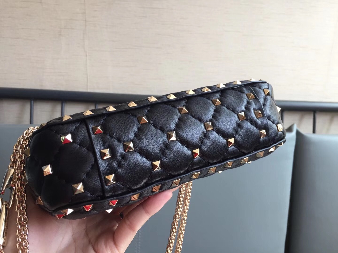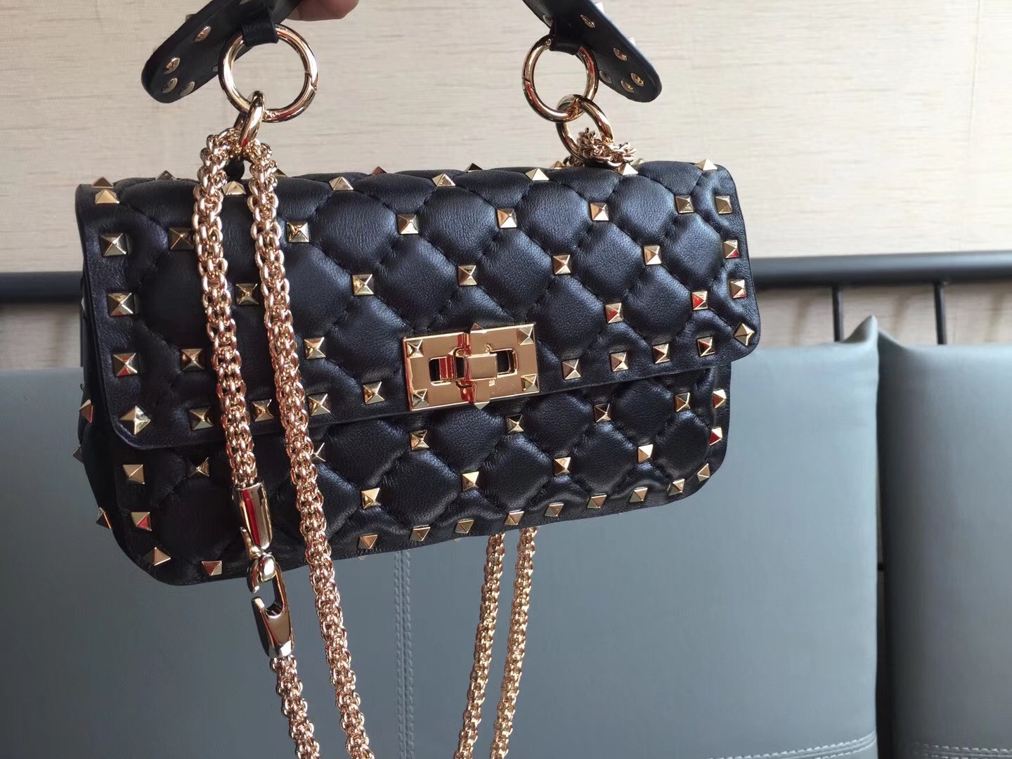 Valentino Garavani’s ‘Rockstud’ embellishments first debuted in the early 2000s and are still coveted after all these years. Crafted from nappa leather, this quilted bag is sized to fit the essentials and finished with the gilded pyramid studs nestled neatly in the tactile quilting. Carry it by the top handle or attach the shoulder strap to drape it cross-body.