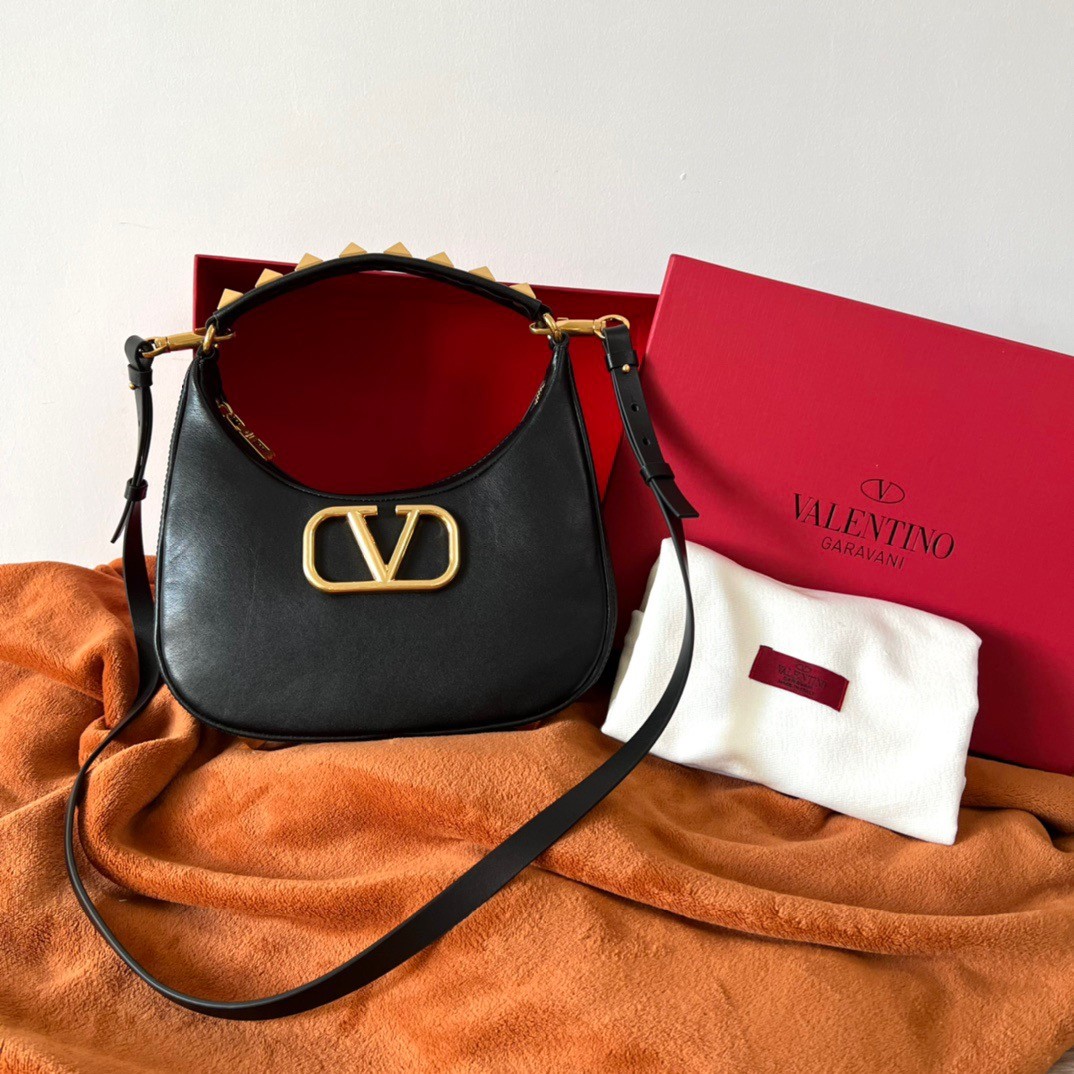 Valentino Garavani’s Stud Sign hobo bag is amongst the latest releases of the house’s coveted Roman Stud line. A new iteration of the namesake’s signature Rockstud first launched over a decade ago; the Roman Stud is a maxi update of this punkish embellishment, adorning the bag’s handle along with the famous VLOGO plaque in the centre. Carry yours by the removable cross-body strap or sling it over your shoulder to display this house icon with pride.