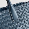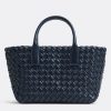 Bottega Veneta Cabat Mini Bag In Navy Blue Intrecciato Lambskin