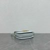 This chic shoulder bag is crafted of fine shiny calfskin leather. The bag features an adjustable leather strap with polished gold hardware and a matching gold press lock on the crossover flap. The flap opens to a front pocket and leather interior with a zipper pocket.