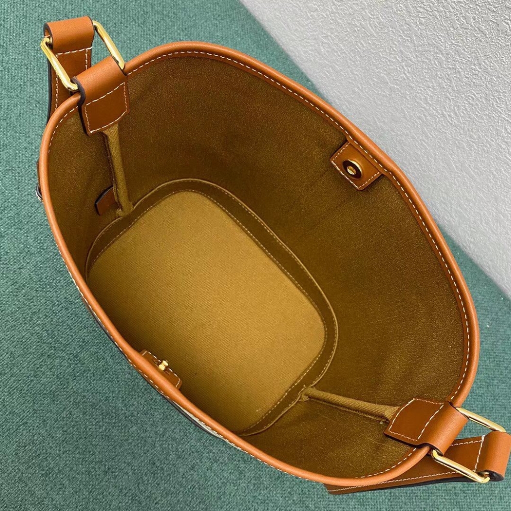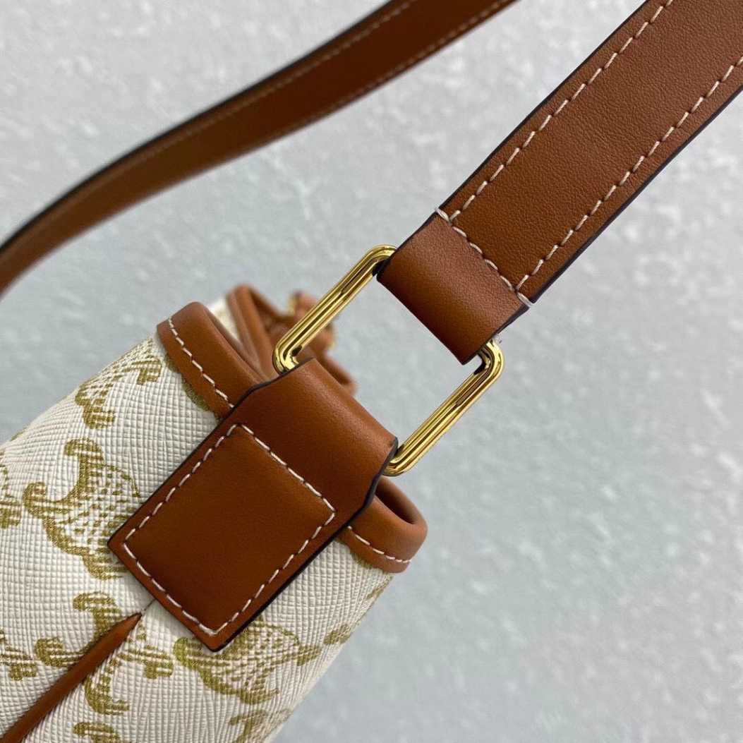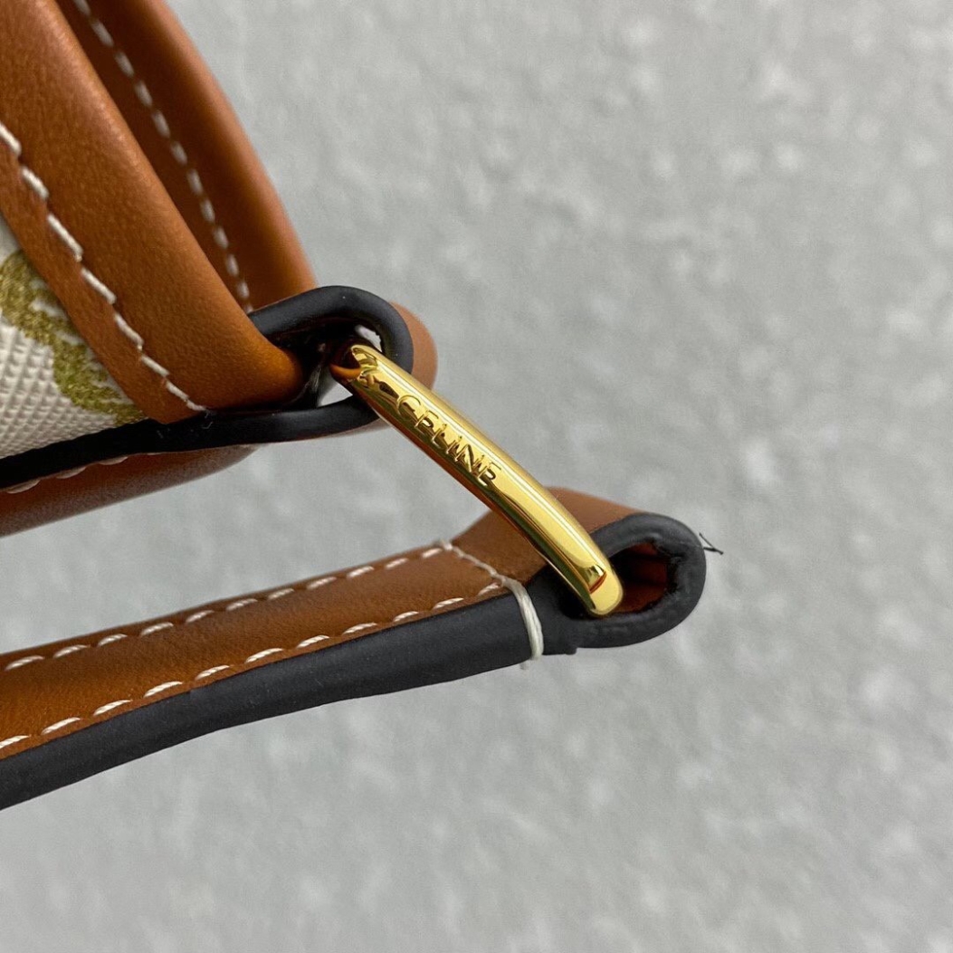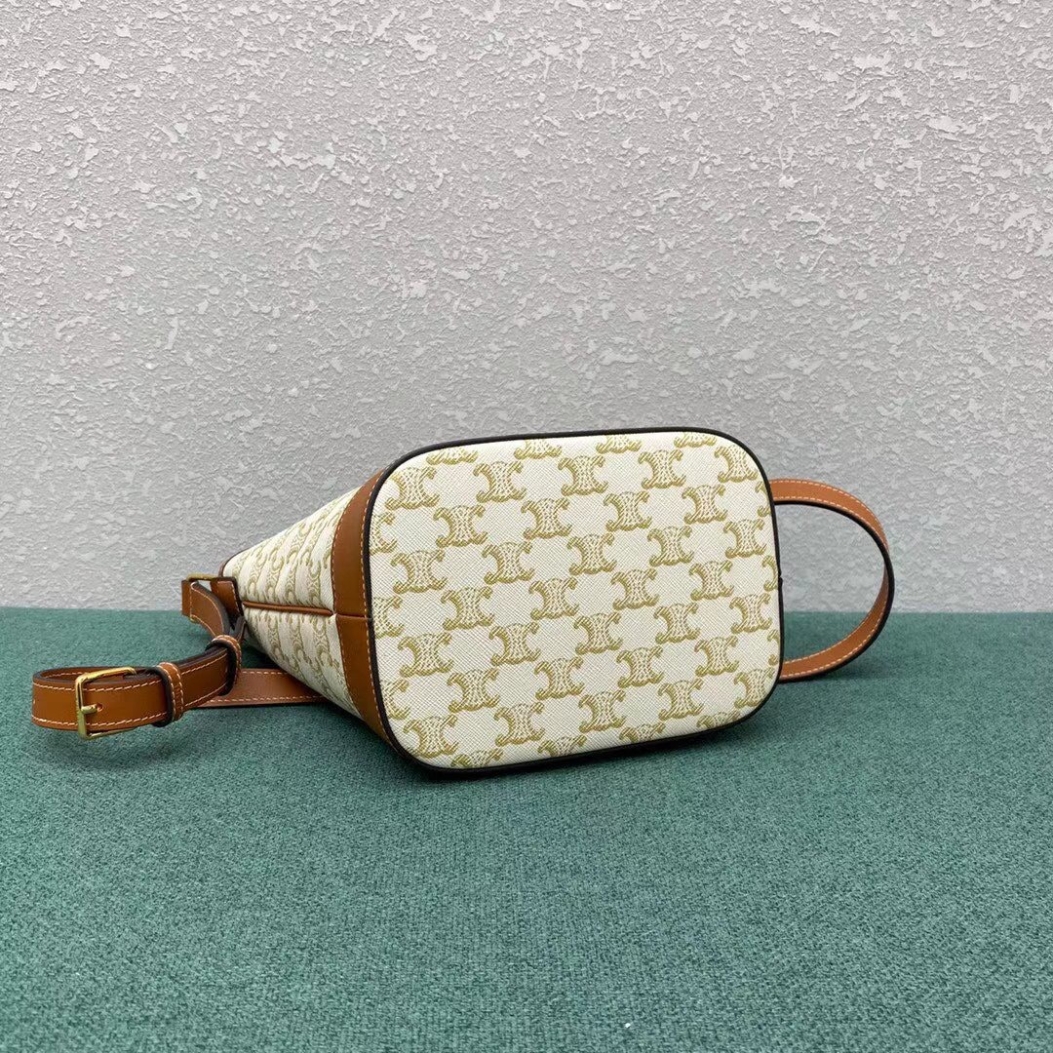 Trimmed in calfskin leather, this Small Model Triomphe Canvas Bucket Bag is a piece from the Celine collection. Embellished with a textile lining, this accessory, which features delicate golden finishes such as the House’s iconic logo on the front, has a snap fastening and an adjustable leather shoulder strap for cross-body or shoulder wear.