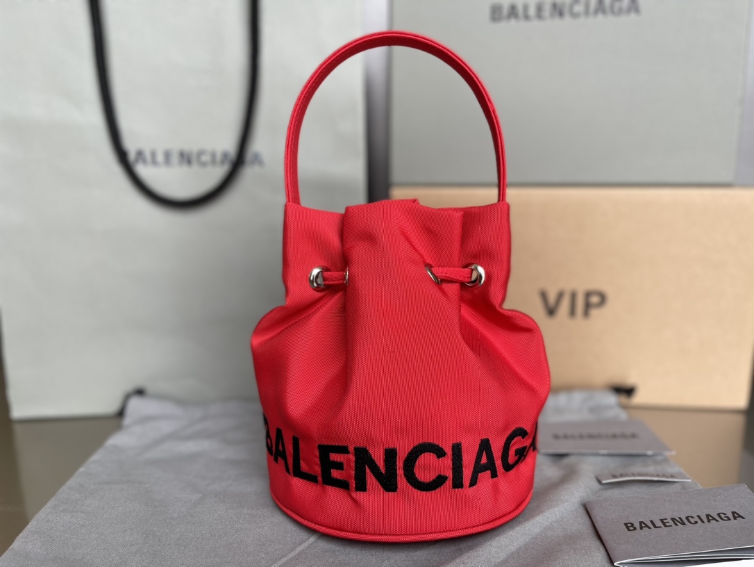 Копировать Balenciaga Wheel XS Drawstring Bucket Bag в красном цвете