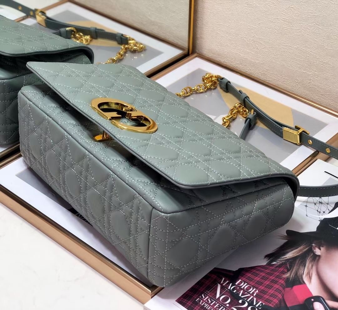 First introduced on Dior’s Cruise 2021 runway, the Caro Bag pays tribute to Christian Dior’s younger sister Catherine, known affectionately as ??Caro??. Inspired by traditional Dior house codes, combining house’s statement Cannage motif and impeccable craftsmanship. The removable signature ‘CD’ chain link shoulder strap can be replaced with a wide embroidered strap, allowing the large style to be worn during both the day and evening in a modern, elegant look.