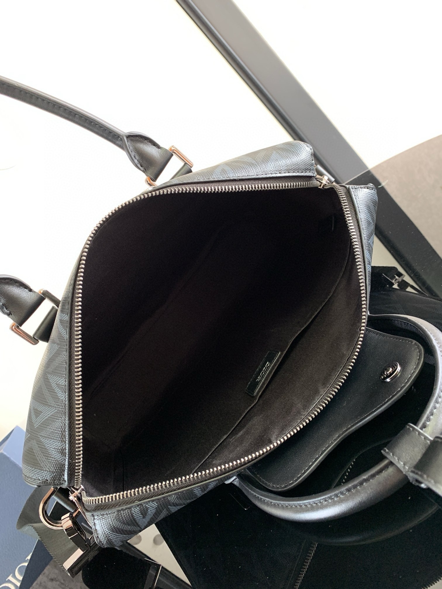New to the Dior Lingot line, the briefcase combines timeless elegance with the House’s couture spirit. The structured style, in black CD Diamond canvas inspired by House archives, is enhanced by smooth calfskin details and a Dior signature on the front. A Saddle flap reveals a zipped spacious interior with a padded laptop compartment. Folding handles and an adjustable and removable shoulder strap allow the bag to be carried by hand, worn over the shoulder or crossbody.