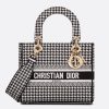 Сумка Dior Medium Lady D-Lite в черном цвете с вышивкой хаундстаут