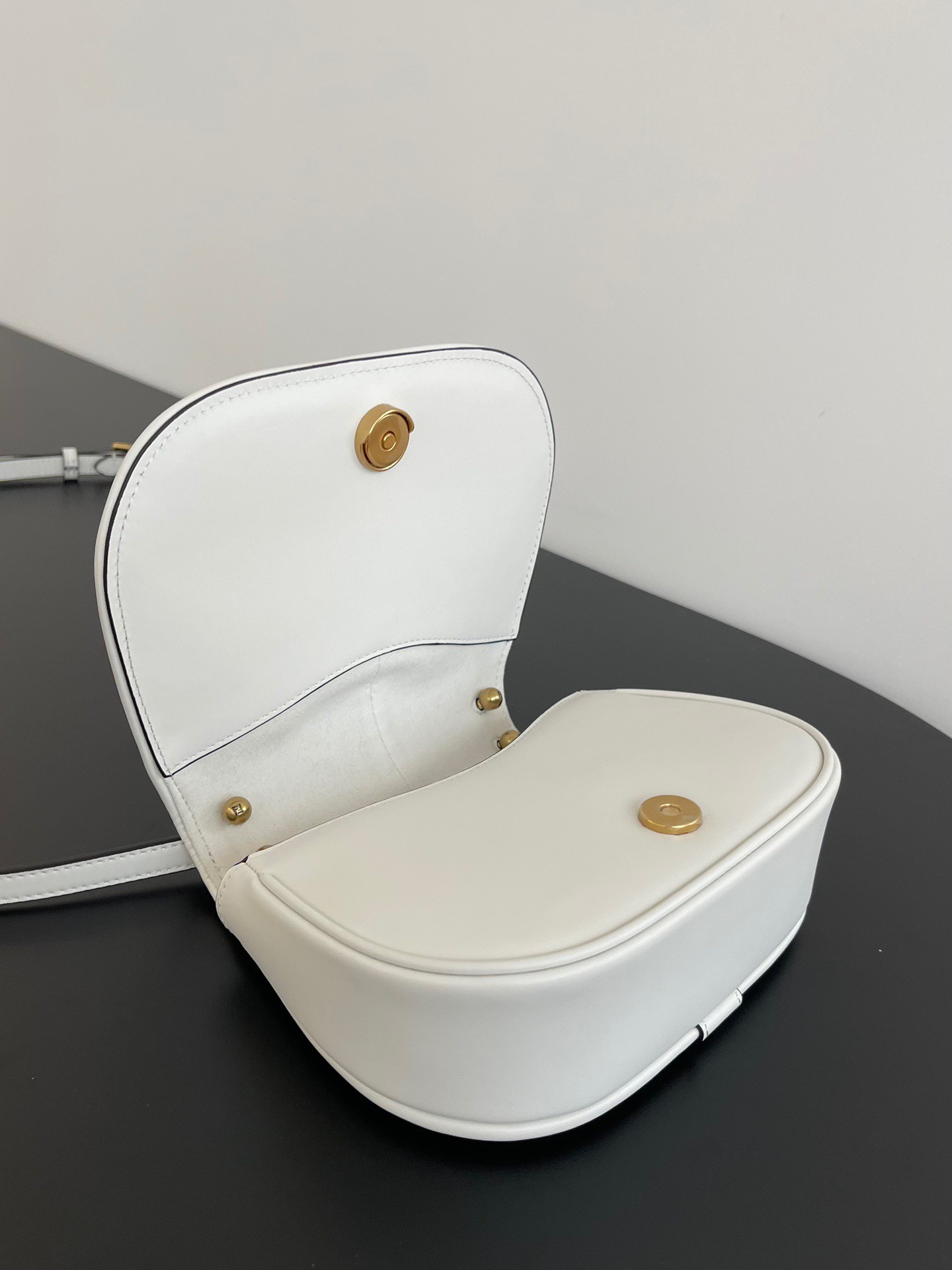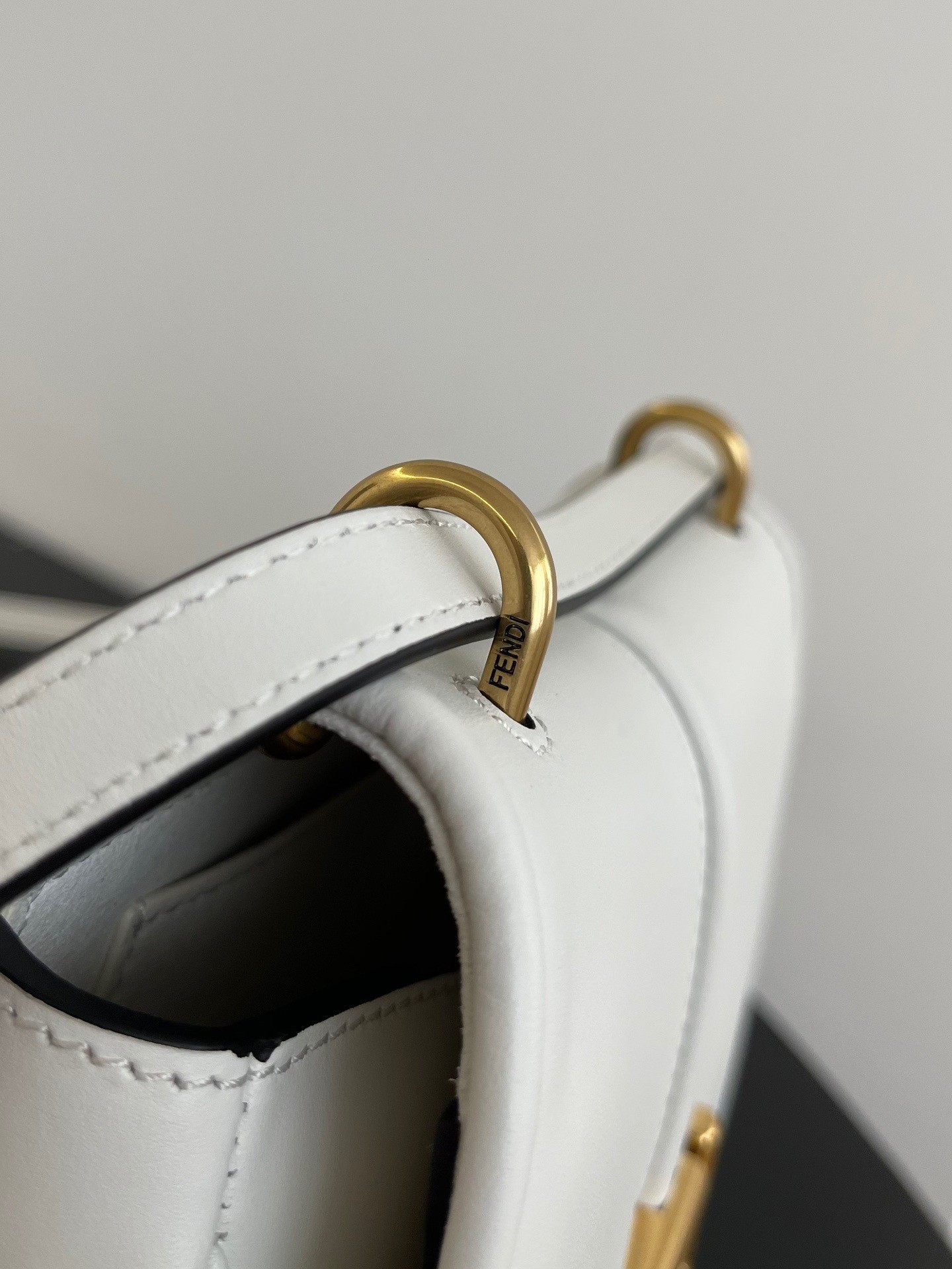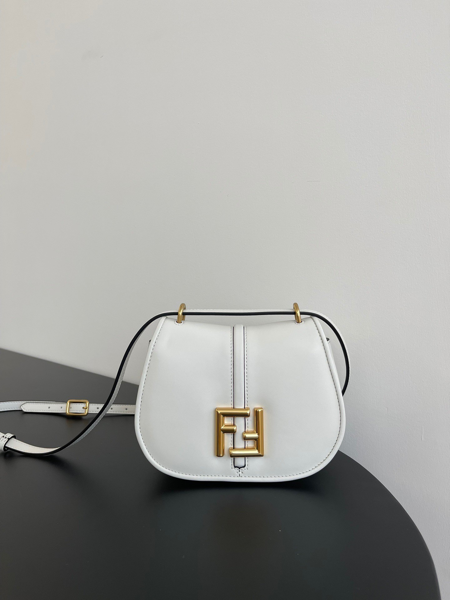 The Fendi C’mon is a satchel-style shoulder bag with feminine, curved lines. It oozes the same elegant simplicity felt throughout the collection and is described as a versatile ode to pure sophistication. This small style is beautifully crafted with a smooth calfskin embodying the same unique embossed leather details and versatile back pocket. Timeless with a powerful identity, the FENDI C’mon smoothly transitions from day to night thanks to its sleek aesthetic and versatile appeal.