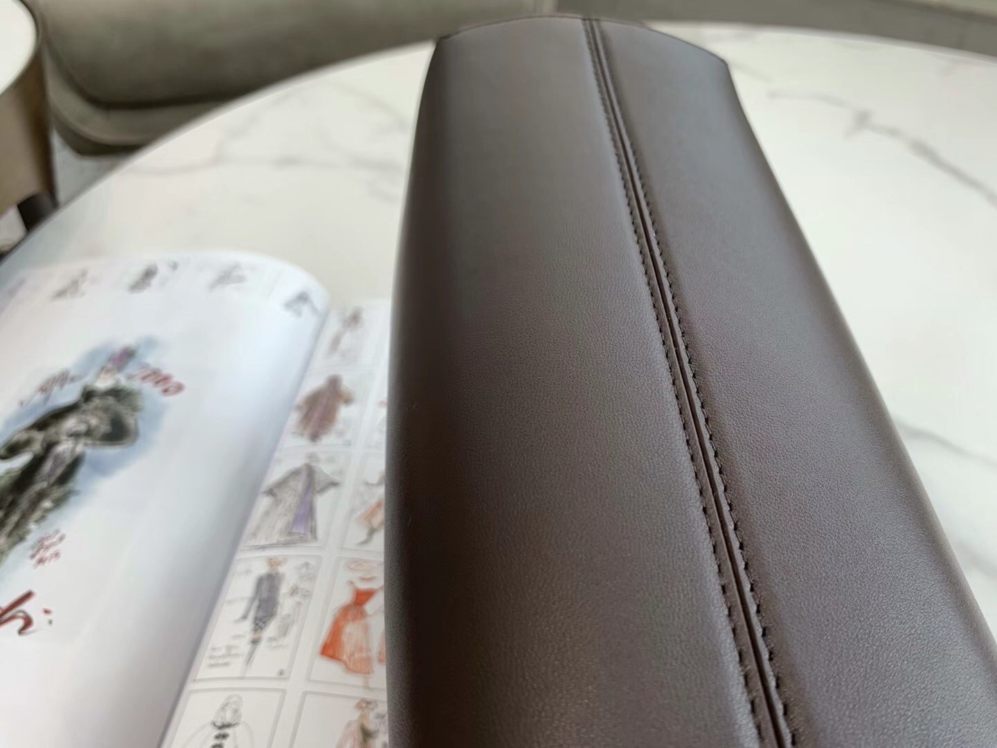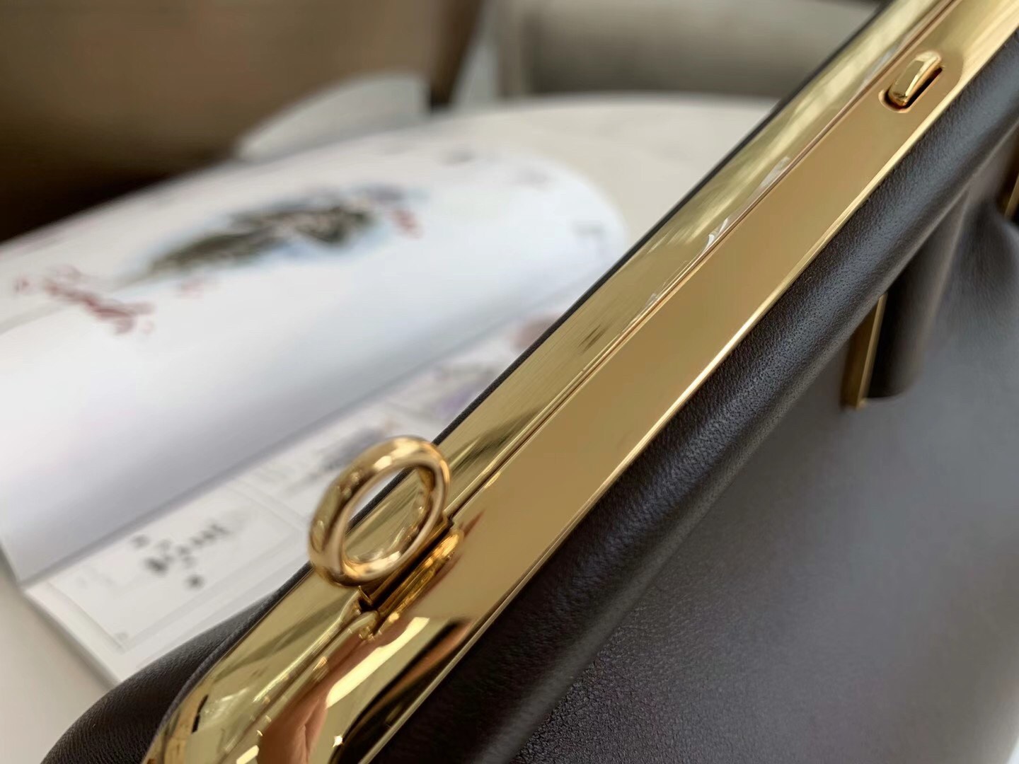 - Металлическая застежка F увеличенного размера, отделанная кожей наппа тон в тон.