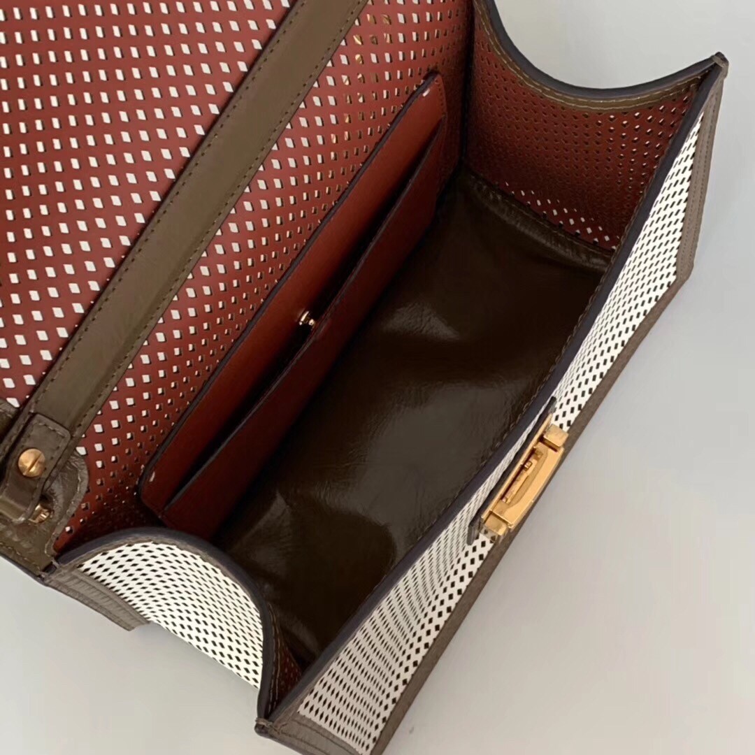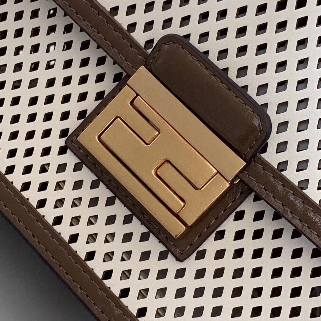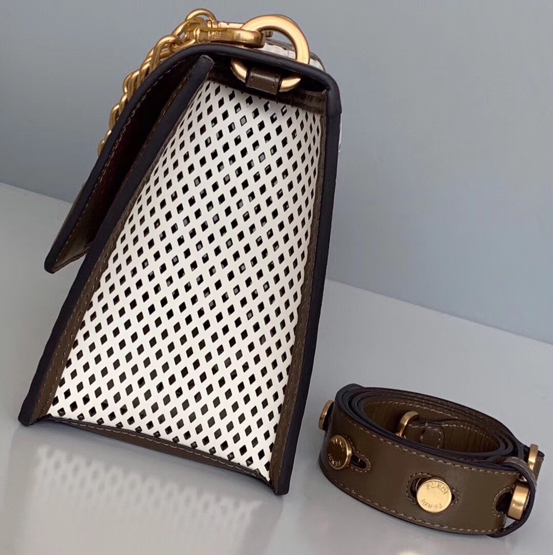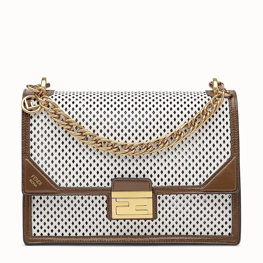 Fendi’s ‘Kanu’ bag is perfectly sized to fit your necessities, so it’s ideal for those days you need to head straight from the office to an event. Made from perforated calf leather, it features smooth brown trims and the label’s instantly recognizable ‘Zucca’ hardware to match the gold chain strap. There’s a slot inside for credit cards, so you can leave your wallet at home.