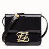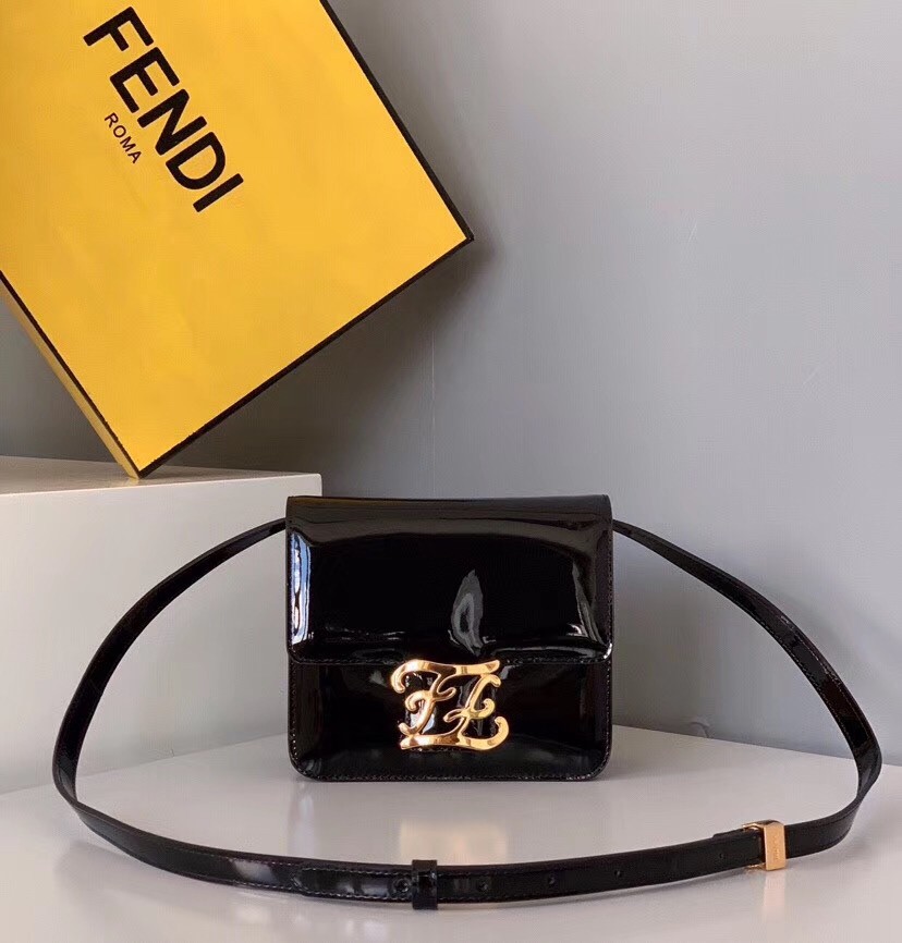 It might be one of the best opportunity to own a memory of Karl Lagerfeld. The Karligraphy Bag is released in honor of Karl. It’s something he has designed back in 1981 ?C the intertwined FF Karligraphy monogram. This Karl-inspired bag has a vintage appeal thanks to the font of the double FF. It’s made with patent leather, which is 100% calf leather. The strap can be detached and used to carry cross body.