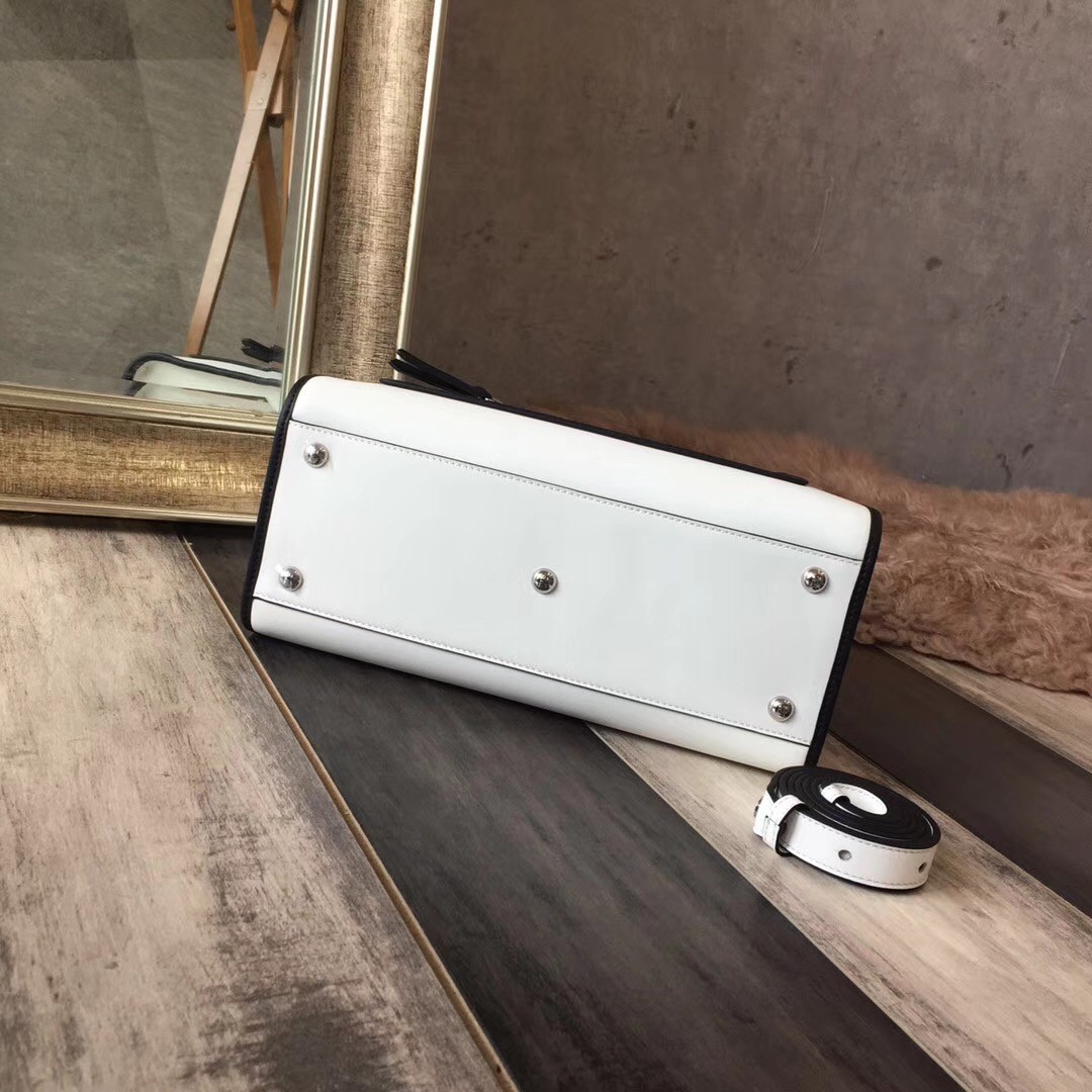 First seen on the Fall Winter 2017 Runway, it’s called Fendi Runaway bag. Chic and structured with a refined navy and black palette, Fendi presents the Runaway bag. A minimal silhouette fastened by a magnetic closure, it features a choice of handles with gold and silver-tone hardware. Perfect for bringing instant polish to your everyday looks,it’s sure to become an instant contemporary classic.