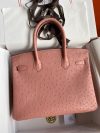 While Herm??s Birkin bags are considered the rarest and most desirable bags in the world, among Birkins, exotic examples are considered even more so. One example of rare exotic skins Herm??s uses to make Birkins is Ostrich, which features a unique pattern of dots made from the bird’s feathers. Herm??s produces Ostrich bags in few numbers, and takes special care when deciding which colors to use. This example, done in classic Blue Iris is an uncompromising neutral that is both subtle and striking, perfectly paired with Palladium hardware. This bag has been used lovingly and gently.