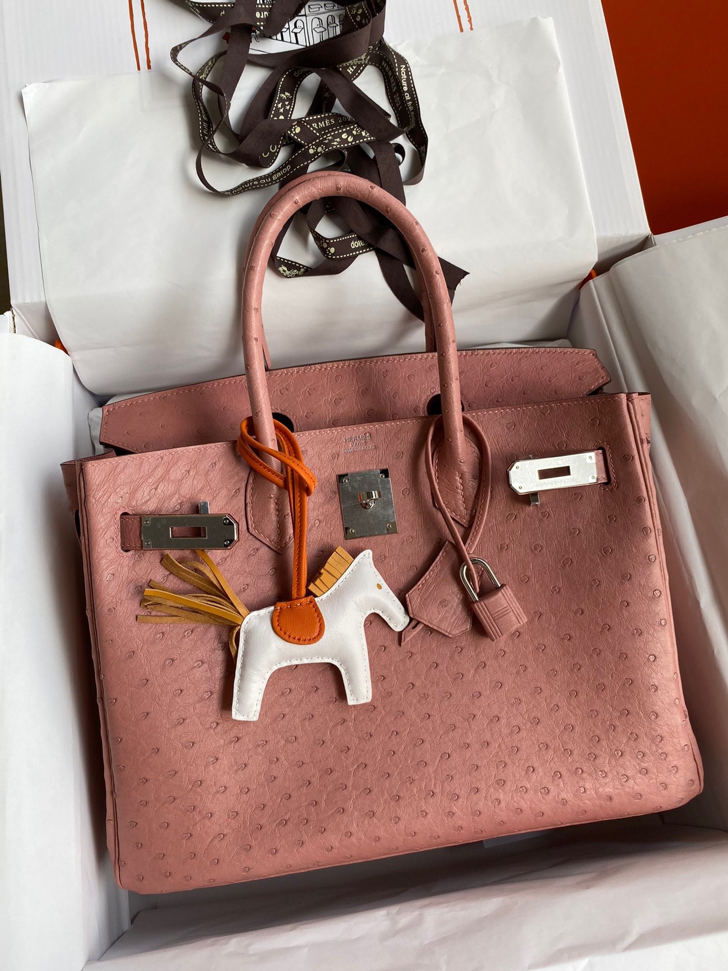 Поставляется с мешком для пыли Hermes и сертификатом.