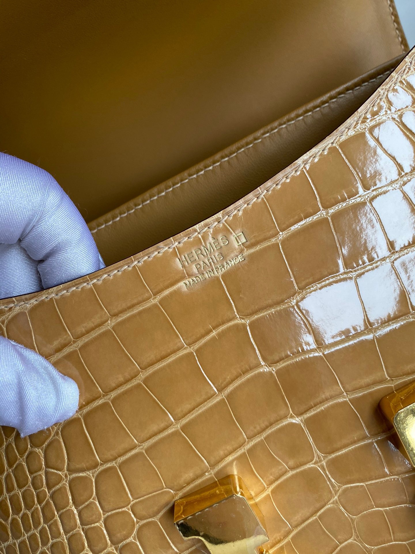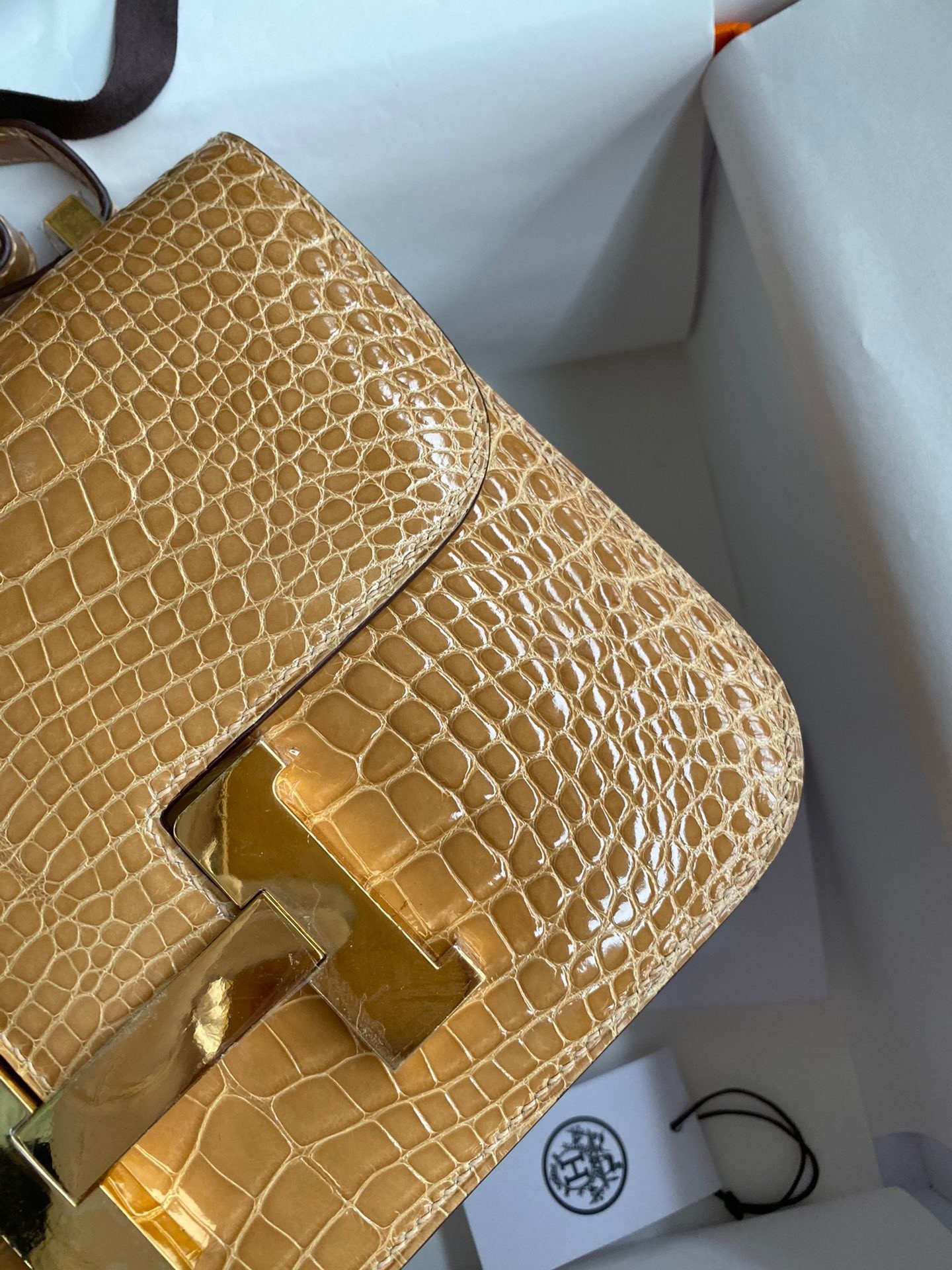 Birthed in 1959 along with its designer’s daughter who shares the name, the Constance bag is considered the third side of the handbag pyramid, forever connected to and supported by the iconic Birkin and Kelly bags. The Herm??s Constance 24cm bag is a chic shoulder bag unparalleled in style. Thanks to its H lock clasp, making it a perfect accessory for a casual occasion or a dressy evening. Made from sophisticated Alligator skin, a skin that comes from the Mississippi Alligator, this leather is created by polishing the spots with agate for a Shiny finish.