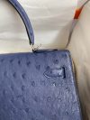 The iconic trapezoid shape of the Hermes Kelly 32 was a striking departure from the ornate handbag styles of the day. The chic look took the world by storm when legendary actress, and crowned princess of Monaco, Grace Kelly was photographed holding her Herm??s Sac ?? D??p??ches bag to shield her baby bump from the paparazzi. This Kelly 32 bag in Sellier, a rigid style made by stitching the sides of the bag on the outside, thanks to the precious Ostrich skin, which is extremely durable and can be wiped down if wet to maintain its appearance.