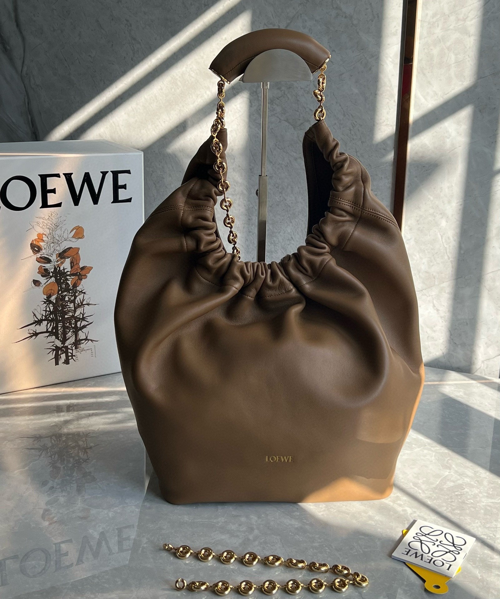 The LOEWE Squeeze bag stands out as an innovation in this world of fashion, this unique statement piece is causing quite a stir. Speaking of squeezing, the name of the bag is derived from the tactile squeezability of the handle. This handle adds a further unusual and beautiful design feature by allowing for both hand and shoulder carrying.