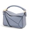 The first bag designed after Jonathan Anderson was appointed creative director in 2014, the Puzzle bag from LOEWE exudes modern artistry with its innovative cuboid shape that takes 524 actions to complete and perfect. Crafted from smooth leather and suspended from a chunky top handle, this small version is defined by the segmented outer pattern and slouchy silhouette that can be conveniently folded completely flat for compact storage.