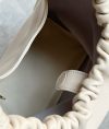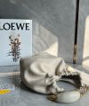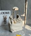 For the Autumn/Winter 2023 collection, LOEWE introduces the new Squeeze silhouette, so named because of its characteristic squishy handle, combines artistic design with fine craftsmanship. Crafted from nappa lambskin and gathered along a doughnut-shaped handle for a design that looks squishy and malleable to touch. A swinging ball chain creates glamorous dynamism, with a puffy leather-coated handle for comfort.