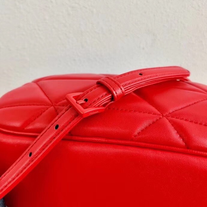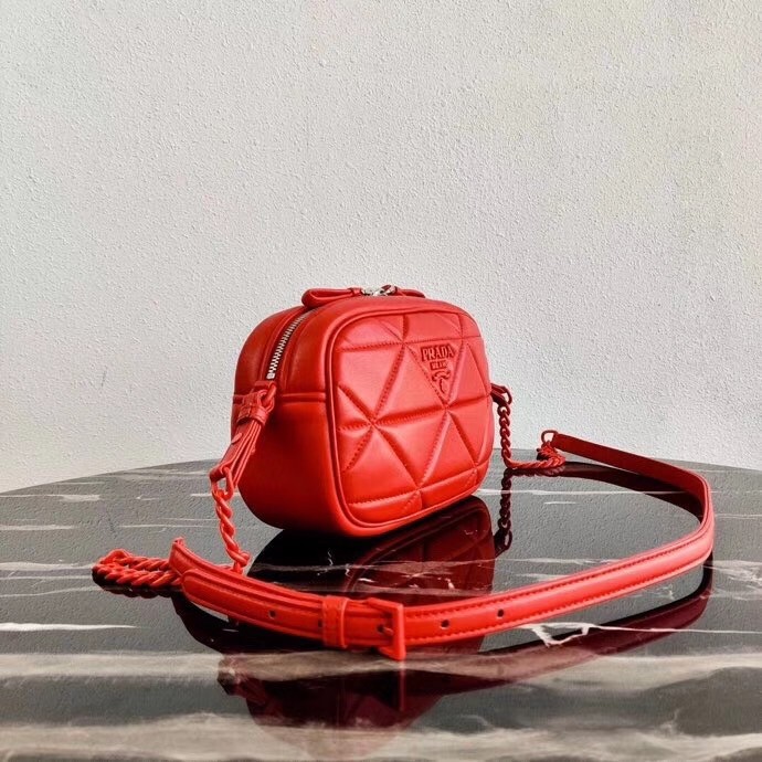Characterized by the geometric stitched design, quilted nappa leather adds a romantic touch to the design of this Camera bag from Prada. The accessory is decorated with a metal logo.