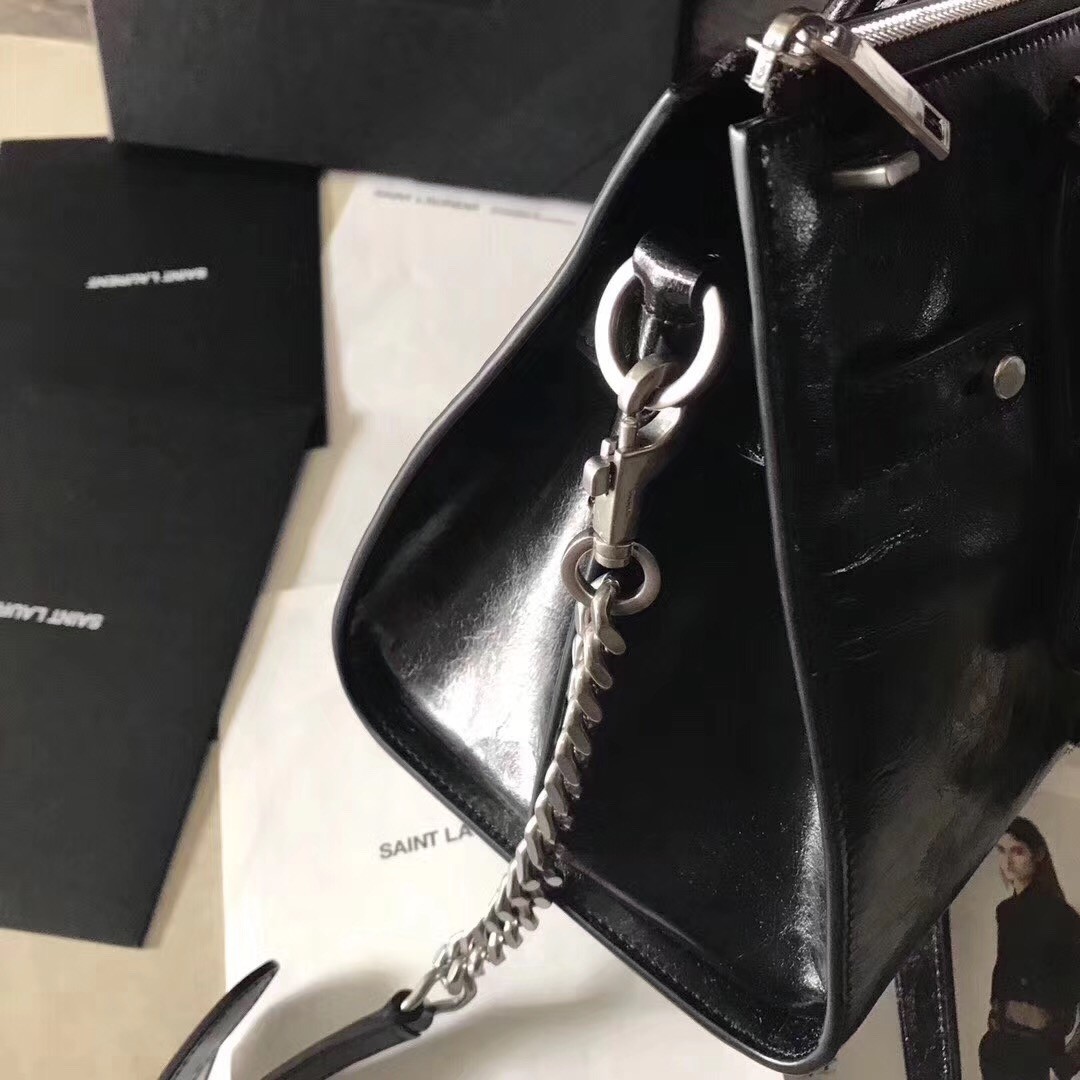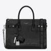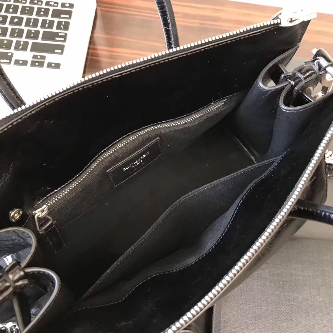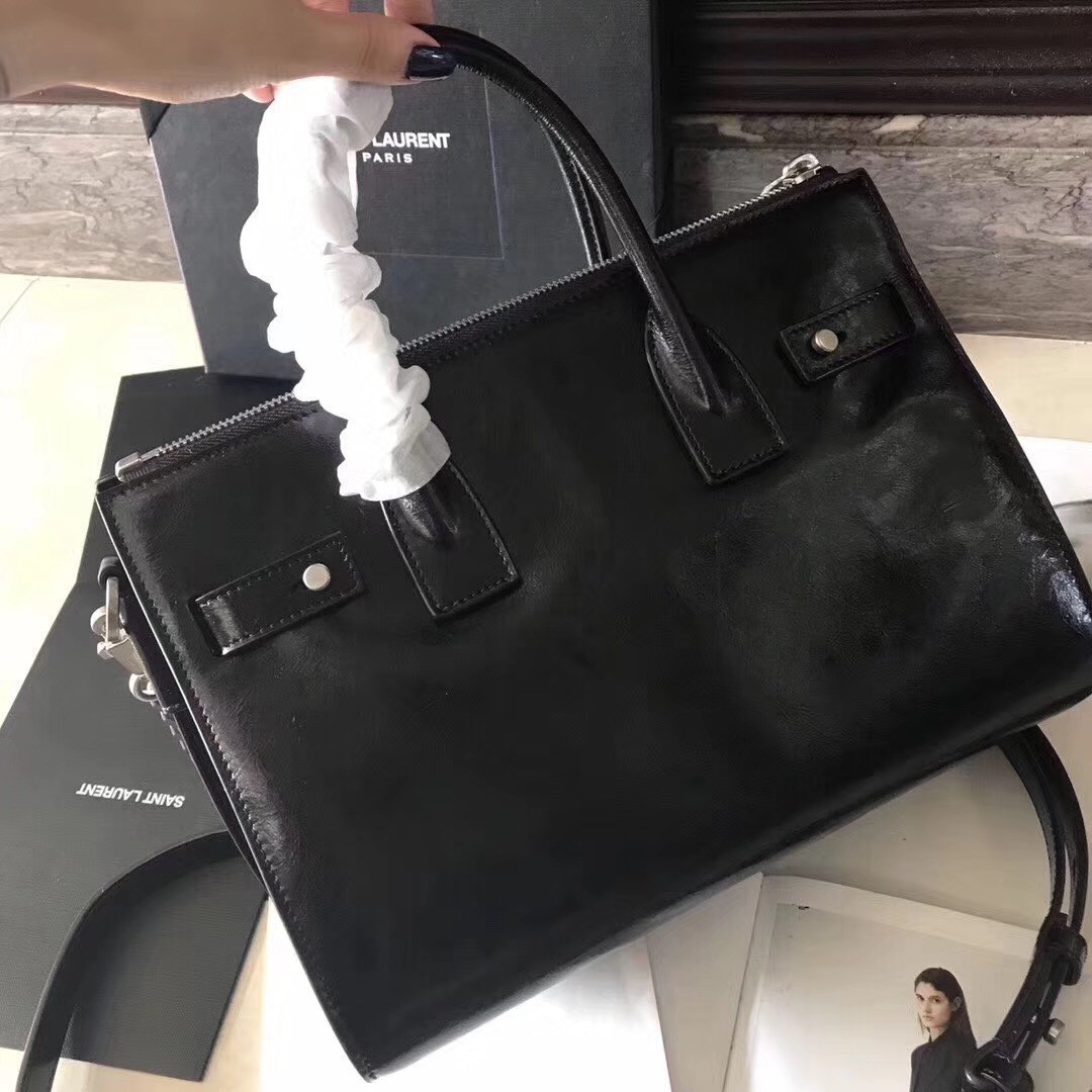 Saint Laurent is the rebranded version of the house of Yves Saint Laurent with creative director Hedi Slimane at the helm. Now considered a “Signature” Saint Laurent bag, this Sac de Jour tote features a sleek shape, accordion sides, tubular leather handles and an embossed Saint Laurent signature at the center. The fine textile interior boasts several pockets for storage. The beauty in this bag is surely in its simplistic nature.