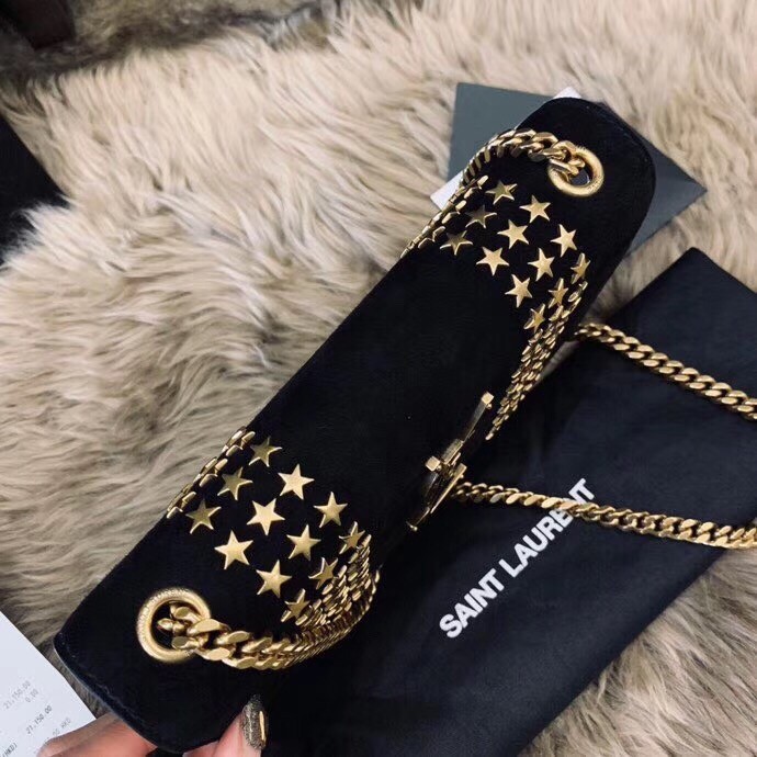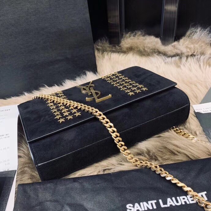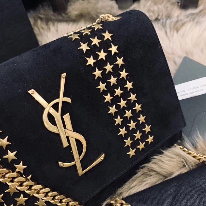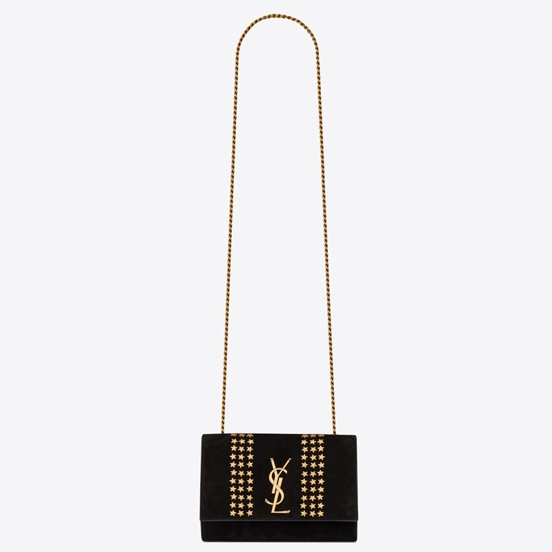 Part of the label’s archives for years, Saint Laurent’s Kate shoulder bag is pretty iconic to say the least, and no matter what kind of rework, it’s still instantly recognisable. This iteration is made from suede, which is decorated with star studs. Detailed with metallic embroidered branches stemming up its side, it’s carried by a chunky curb chain strap.