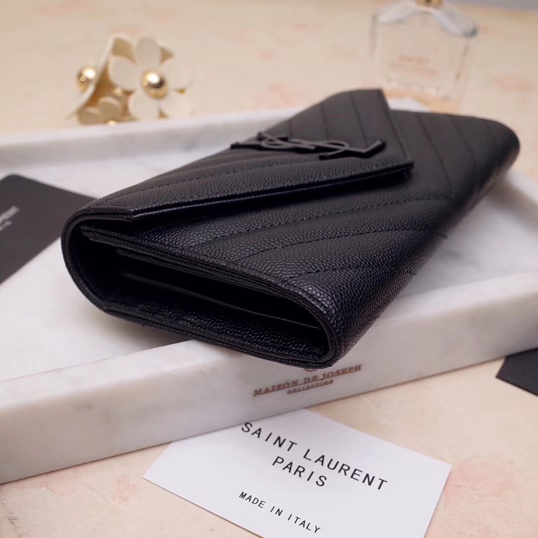 Saint Laurent’s wallet is made from grain de poudre embossed leather that’s hard-wearing enough to hold its own at the bottom of your tote. Crafted in the label’s quilted chevron design, it’s topped with tonal ‘YSL’ hardware. Inside there are two slip pockets, six card slots and a zipped compartment for loose change.