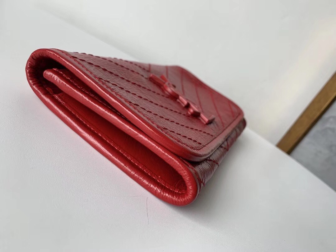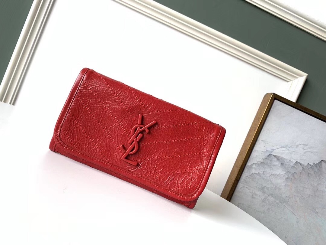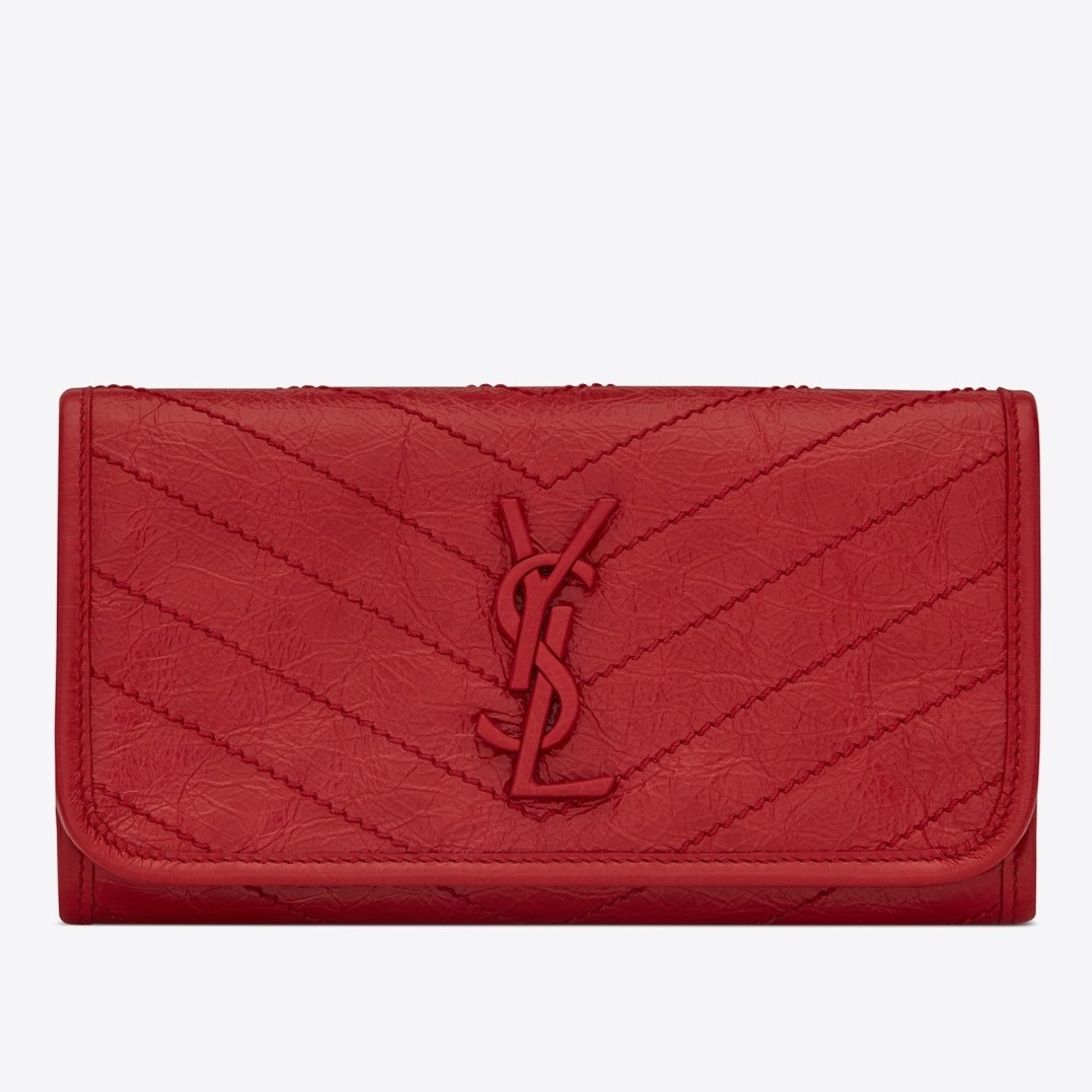 Inspired by the iconic Niki handbag, the Saint Laurent’s Niki large wallet in supple glossed-leather that’s crinkled to look somewhat vintage combines a functional design with fashion appeal. It’s embroidered with chevrons and decorated with iconic ‘YSL’ hardware. Sensorial yet functional, it is still large enough to fit all your daily essentials.