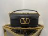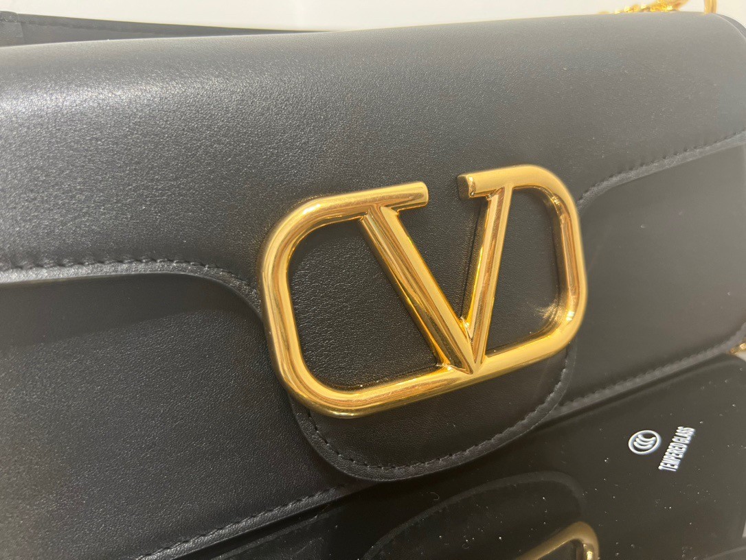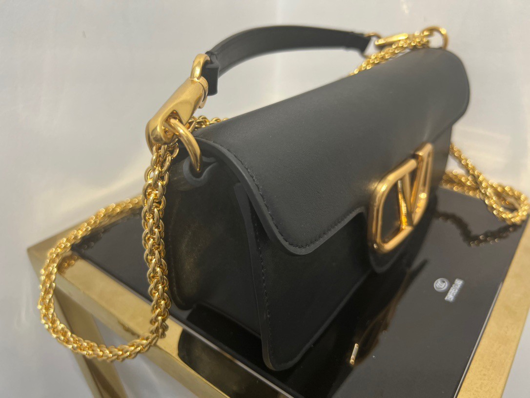 The prominent construction, enriched by the padded workmanship and the smooth leather contributes to the minimal elegance of the Valentino Garavani Loc?? bag. The possibility of detaching the handle by transforming the shoulder bag into a clutch also gives the bag the perfect versatility and functionality for a contemporary lifestyle. Playful but with a retro appeal, this compact bag features a flap with a VLogo Signature clip closure.