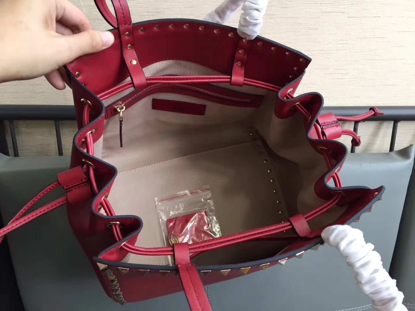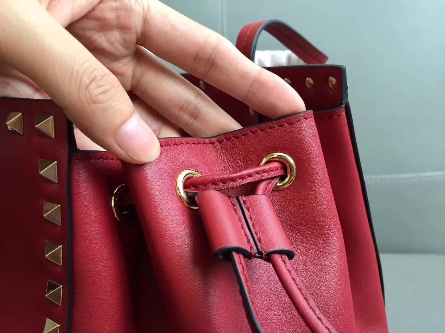 Будьте первым, кто оставил отзыв на "Valentino Red Rockstud Double Handle Drawstring Bag"