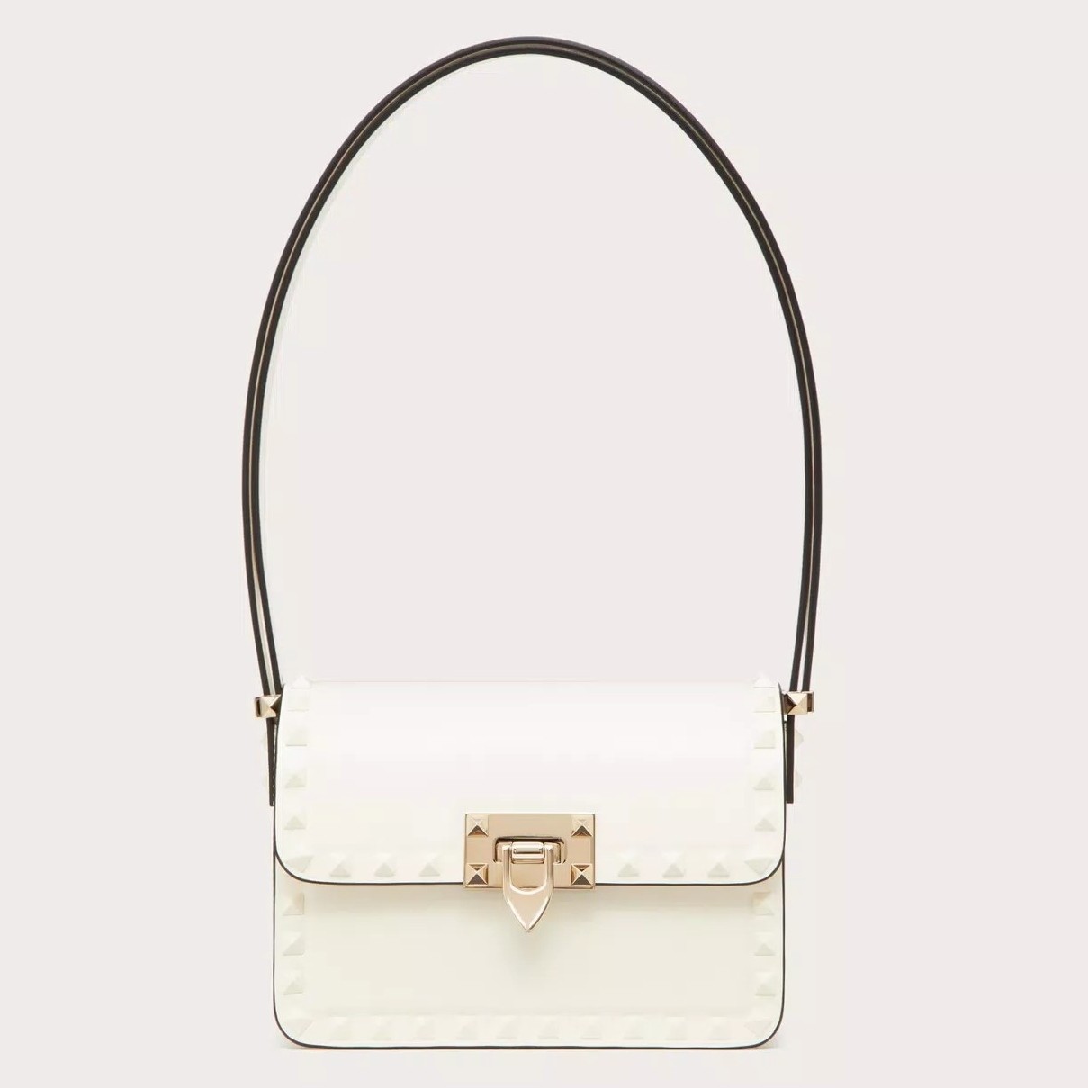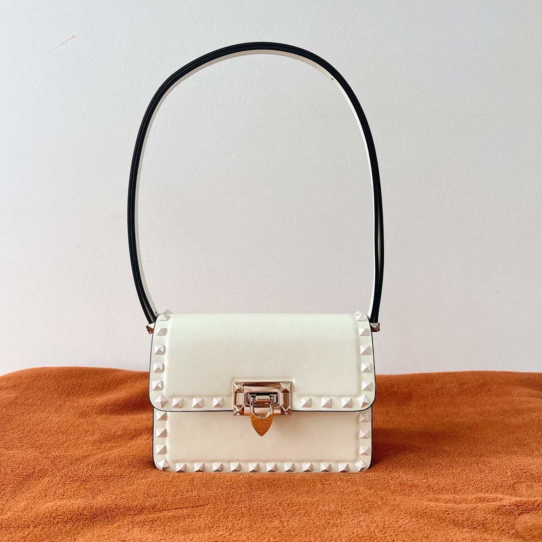 Valentino Garavani’s Rockstuds are an emblem so widely adored that they almost need no introduction ?C though the small Rockstud23 shoulder bag warrants its own grand entrance. The ideal size for every day, it’s designed in a petite elongated silhouette that’ll stand the test of time, while the distinctive hardware that trims the edges helps place it in powerfully feminine territory.