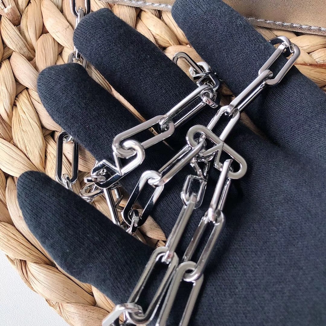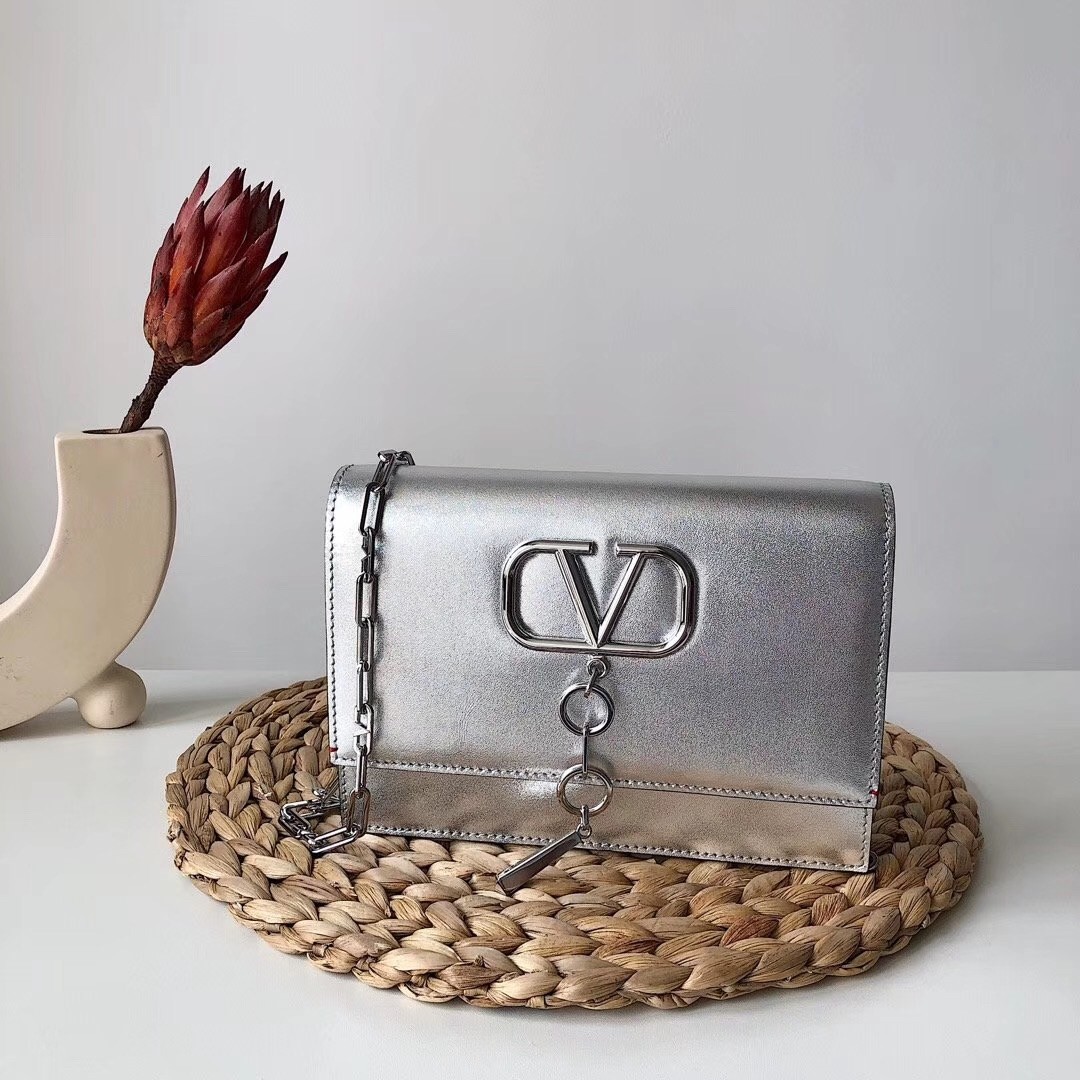 Valentino’s ‘VCASE’ shoulder bag is perfect for incorporating a little shine into your outfits. It’s made from soft metallic leather and centered with a signature ‘V’ tassel that will match silver jewelry beautifully. The chain shoulder strap detaches so you can carry it in-hand at more formal events.
